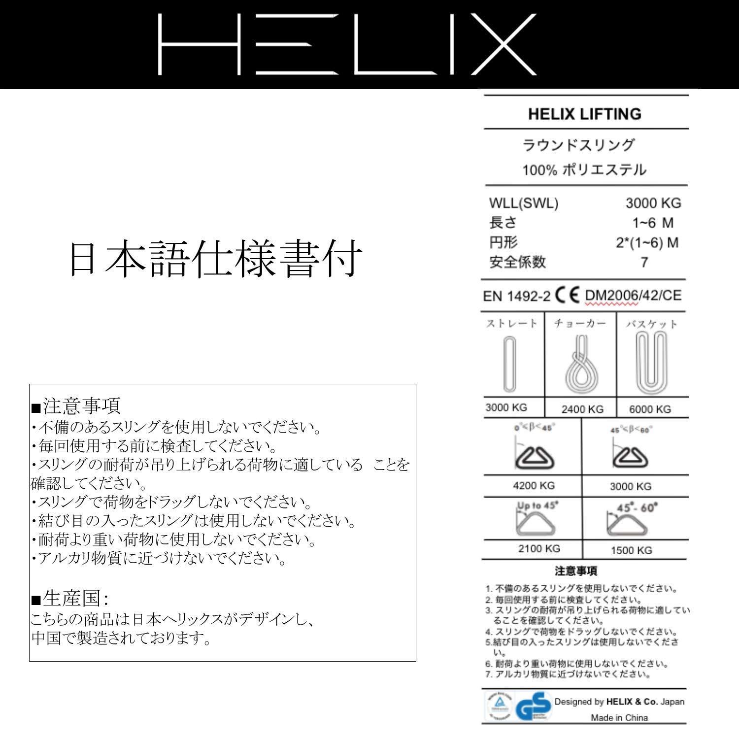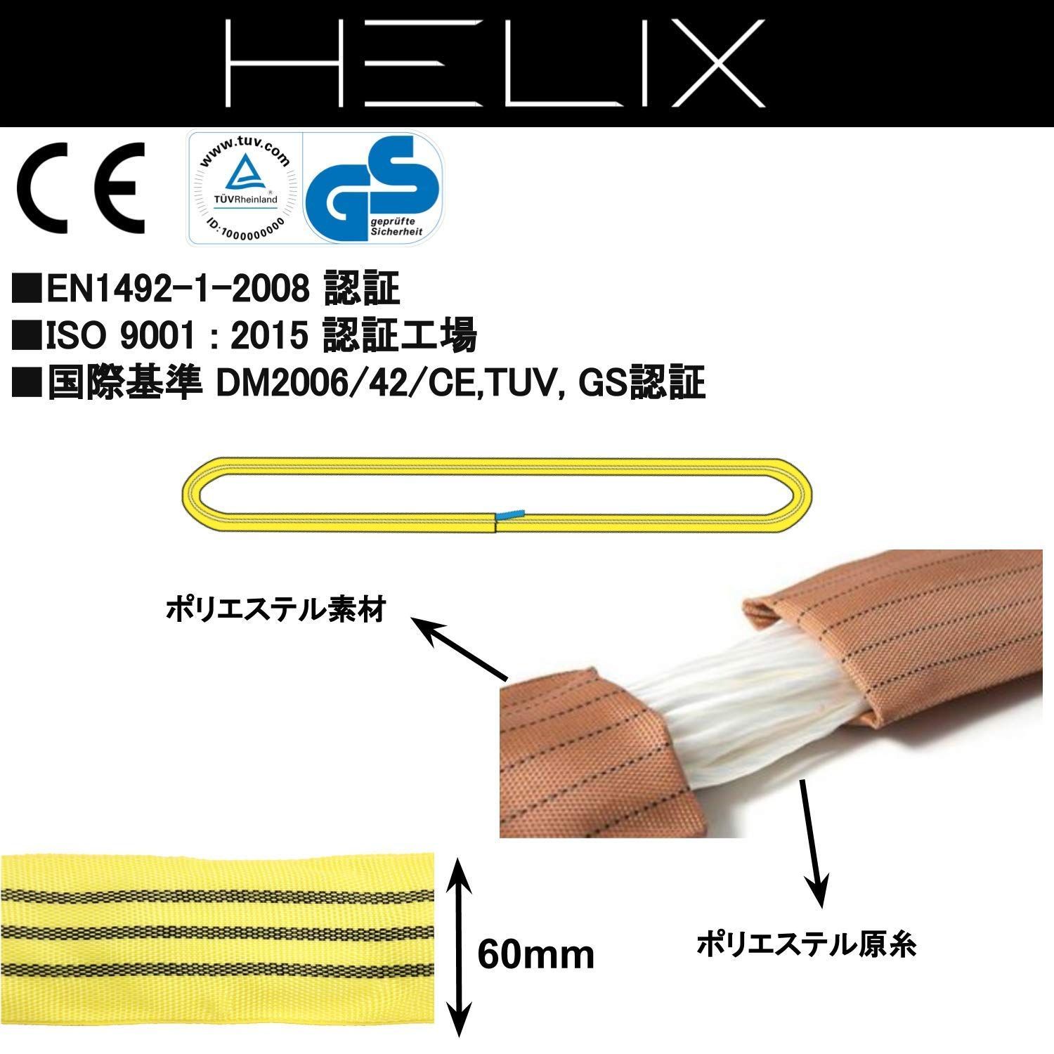 吊上げ 牽引 使用荷重3000kg エンドレスタイプ 幅60mm 3T ラウンドスリング【2本セット】2m 日本語仕様書付 HELIX