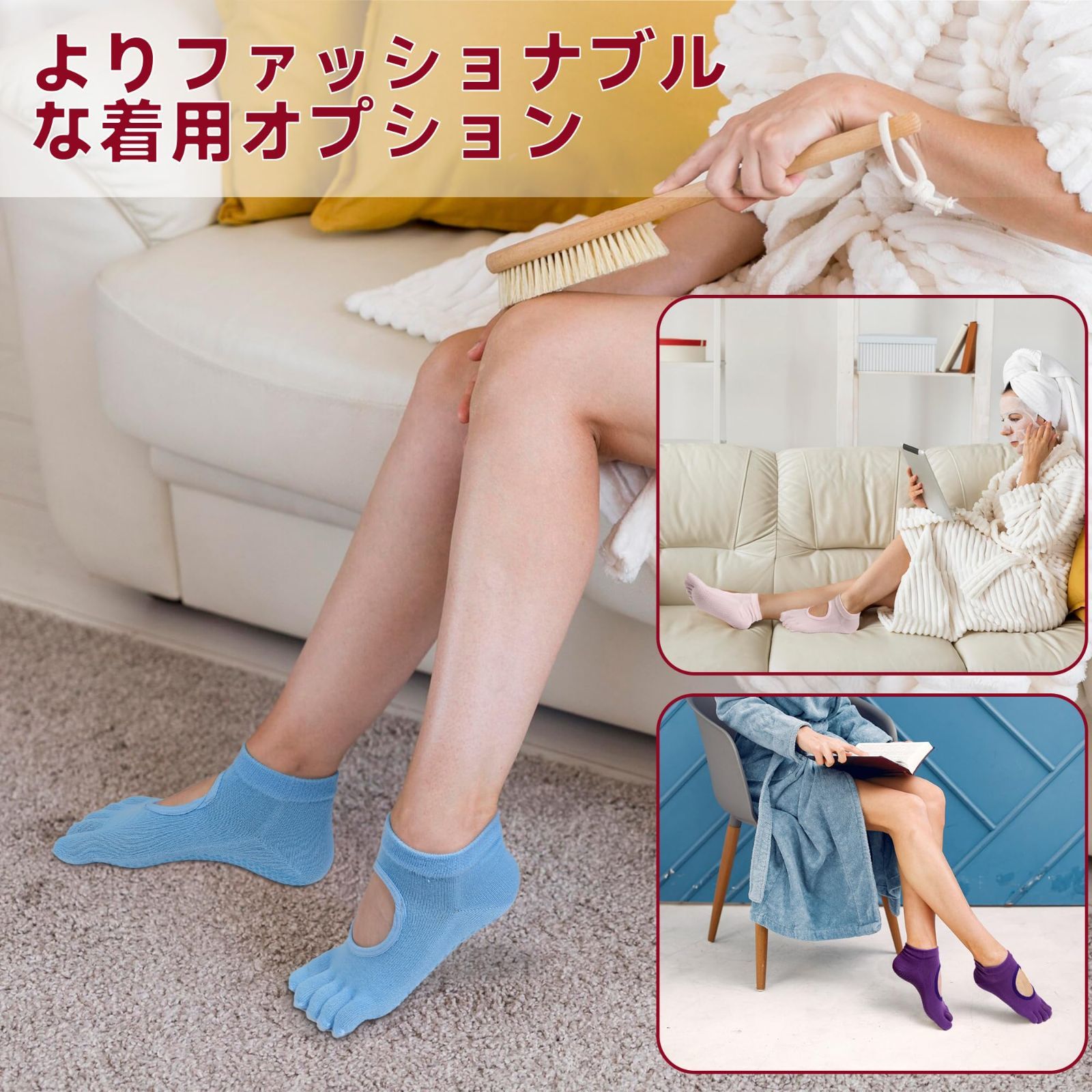 [ZenBeya] ピラティス 靴下ヨガソックス 5本指 滑り止め レディース 指なし ジム ヨガウェア ショートソックス つま先なし 通気 抗菌 防臭 吸湿性