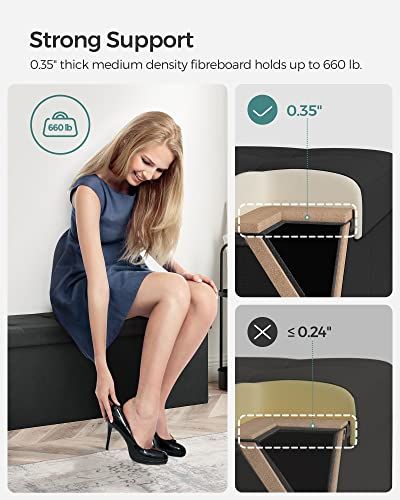 【高品質で耐久性があります】この収納スツールは頑丈な繊維板フレームで支えられており、最大耐荷重は130KGまで耐えることができますので、安心して座ることができます