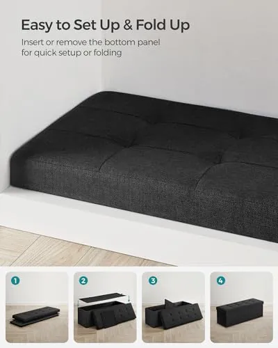 【簡単な取り付けと折りたたみ】底板を差し込むだけで取り付けが完了し、このスツールを使用することができます。使用しないときは、簡単に折りたたんでコンパクトに収納でき、ベッド下やクローゼットに場所を取らずに収納できます