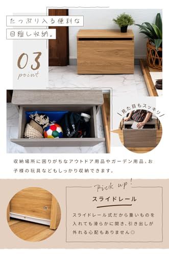 【目隠し収納で玄関スッキリ】 散らかりがちな玄関周りのアイテムをスッキリ収納。スライドレール式で滑らかに開くので、気兼ねなくたくさん収納できます。収納力を活かしてリビングやベッドサイド収納、子どものおもちゃ入れにもご利用できます!
