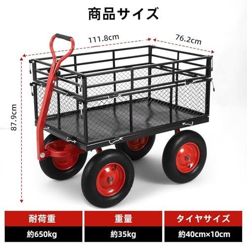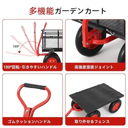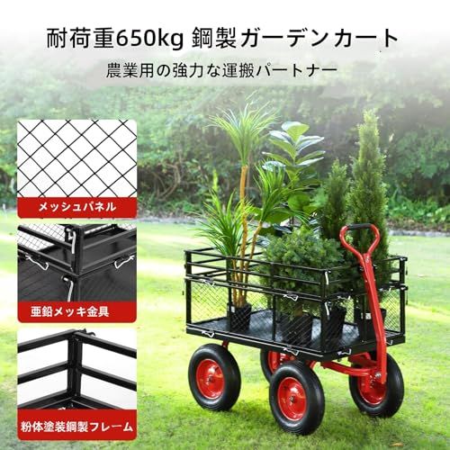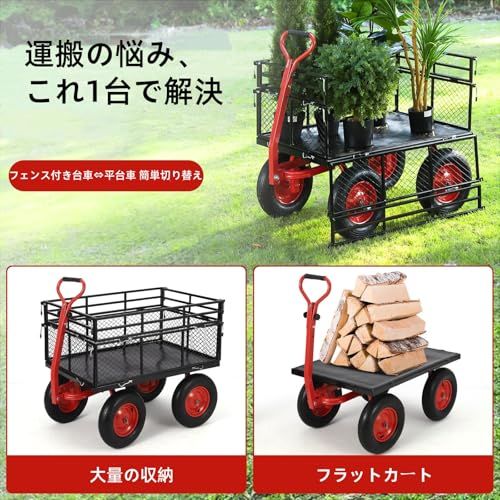 ガービー(Garvee) ガーデンカート 耐荷重650kg 運搬車 カゴ付き台車 メッシュカート 40cm大型タイヤ 取り外し可能な側面 手引き台車 大型収納 ガーデン 倉庫 家庭用 引越し 買い物 日本語説明書付き (111.8×76.2×87.9cm★tm