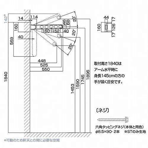 川口技研 窓壁用物干し ホスクリーン RK-55-BL ブラック 1本★tm