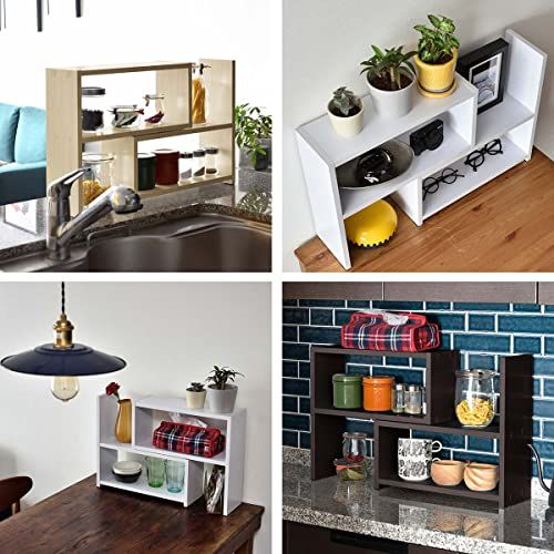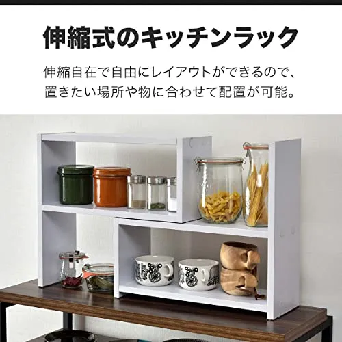 ottostyle.jp スパイスラック カウンター上 収納 キッチンラック 【ホワイト】 伸縮幅45?85cm スライド 伸縮式 L字 木製 コーナーラック カウンターキッチン ダイニングテーブル デスク すべり止め付★tm