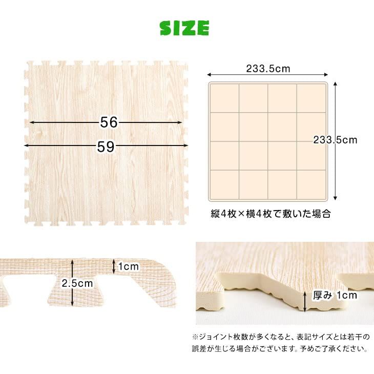 【サイズ】縦4列横8列で敷いた場合 約466235cm(6畳) / 外寸:幅59奥行59厚み1cm(1枚)