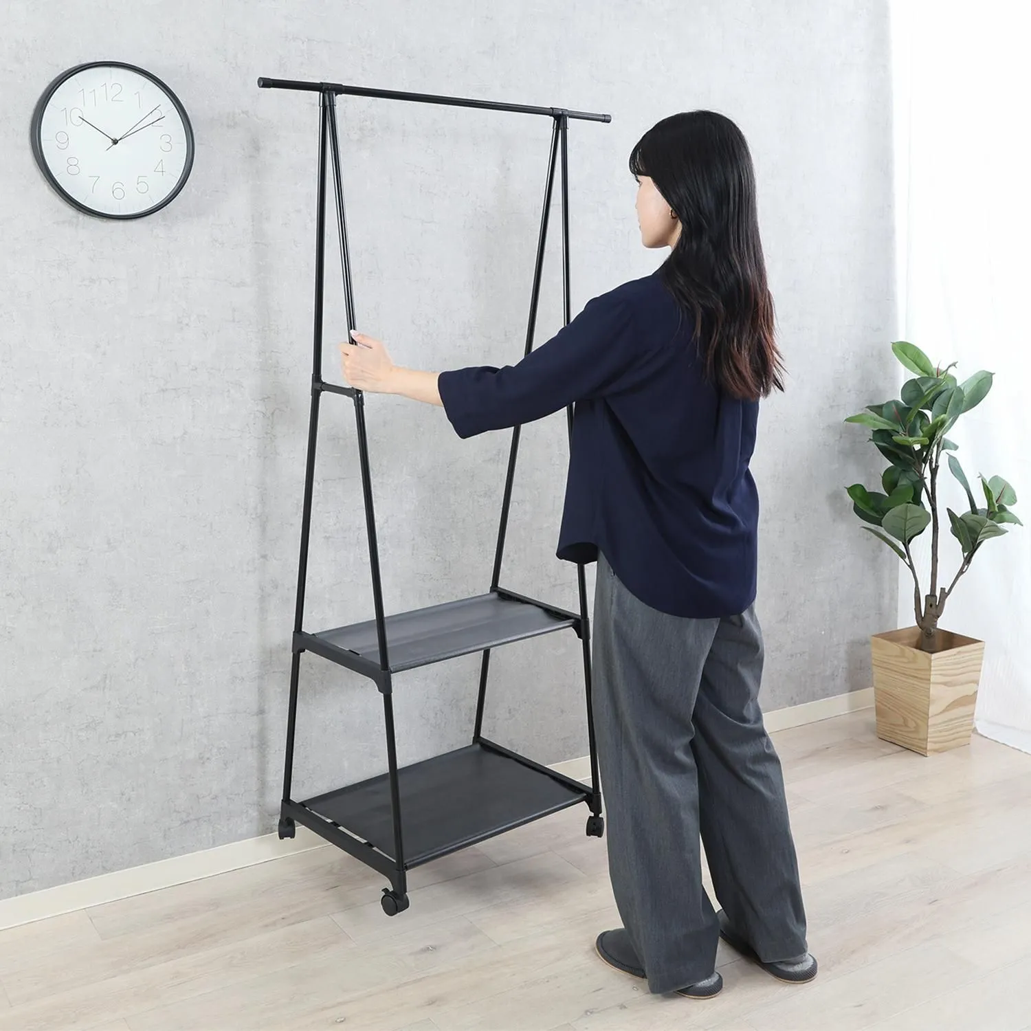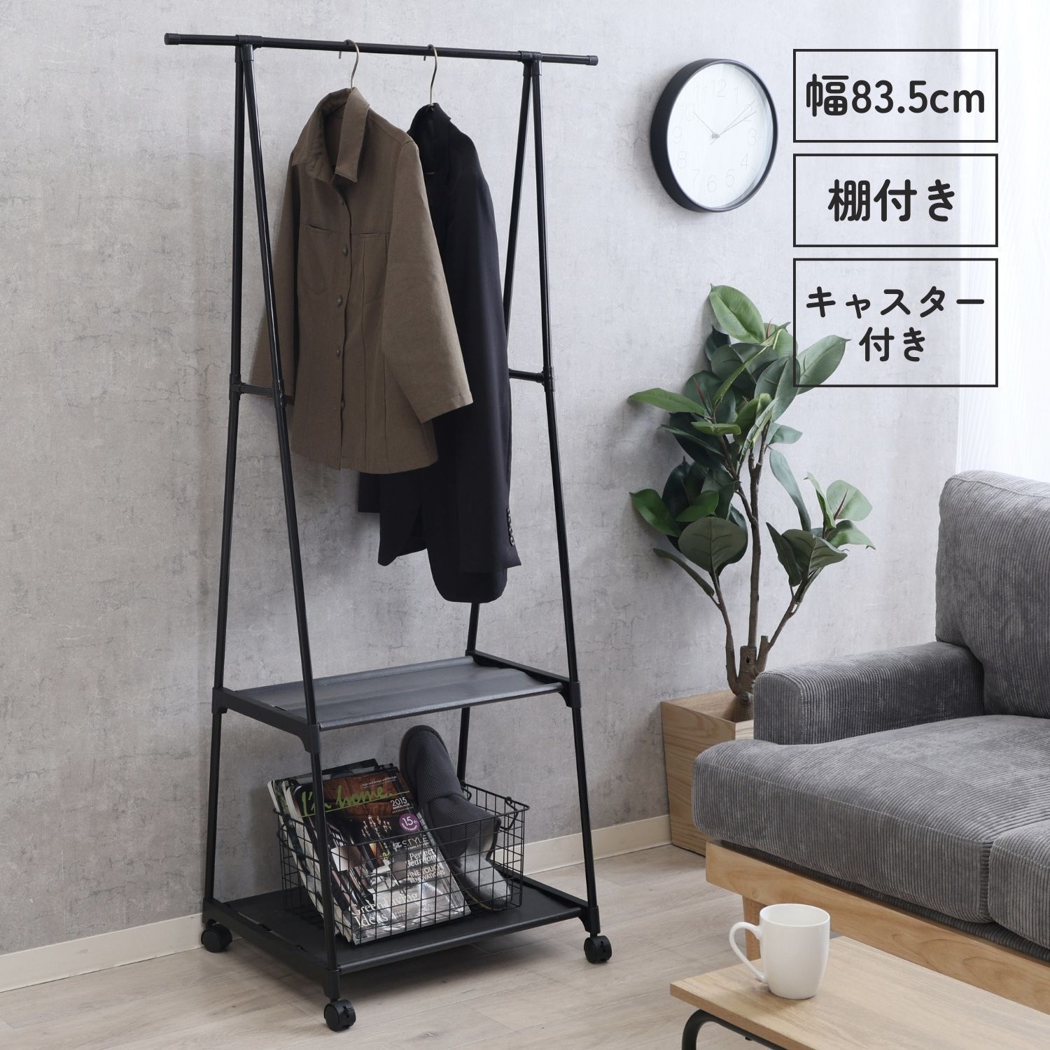 [全国送料無料] A型ハンガーラック A型 棚付き キャスター付 2段棚 衣類収納 リビング コンパクト 4003