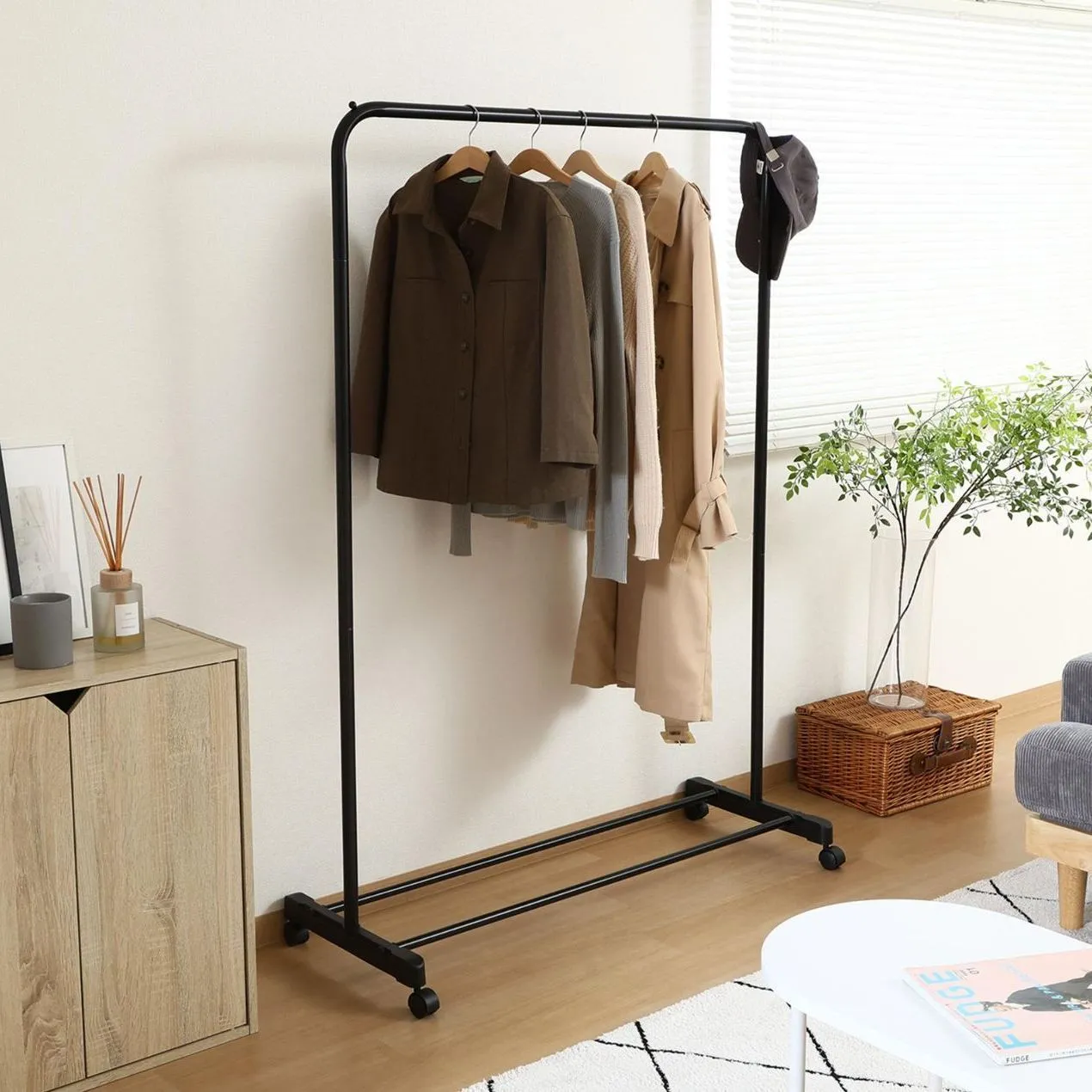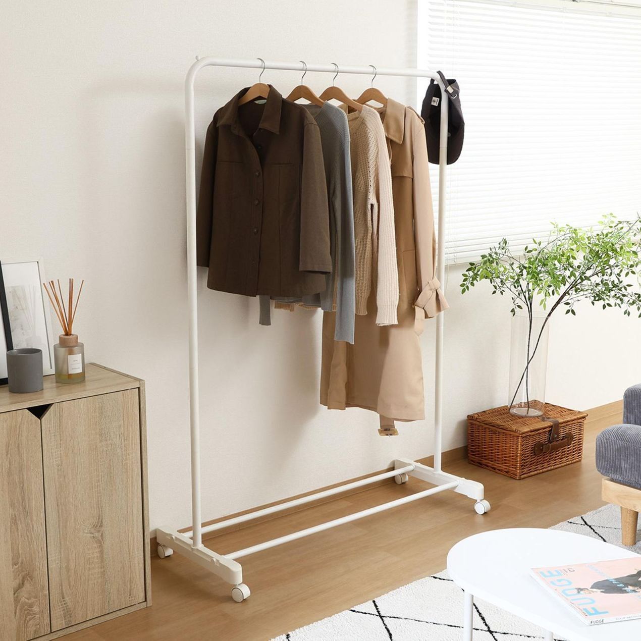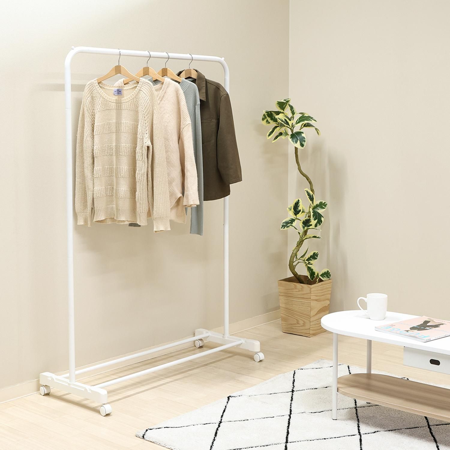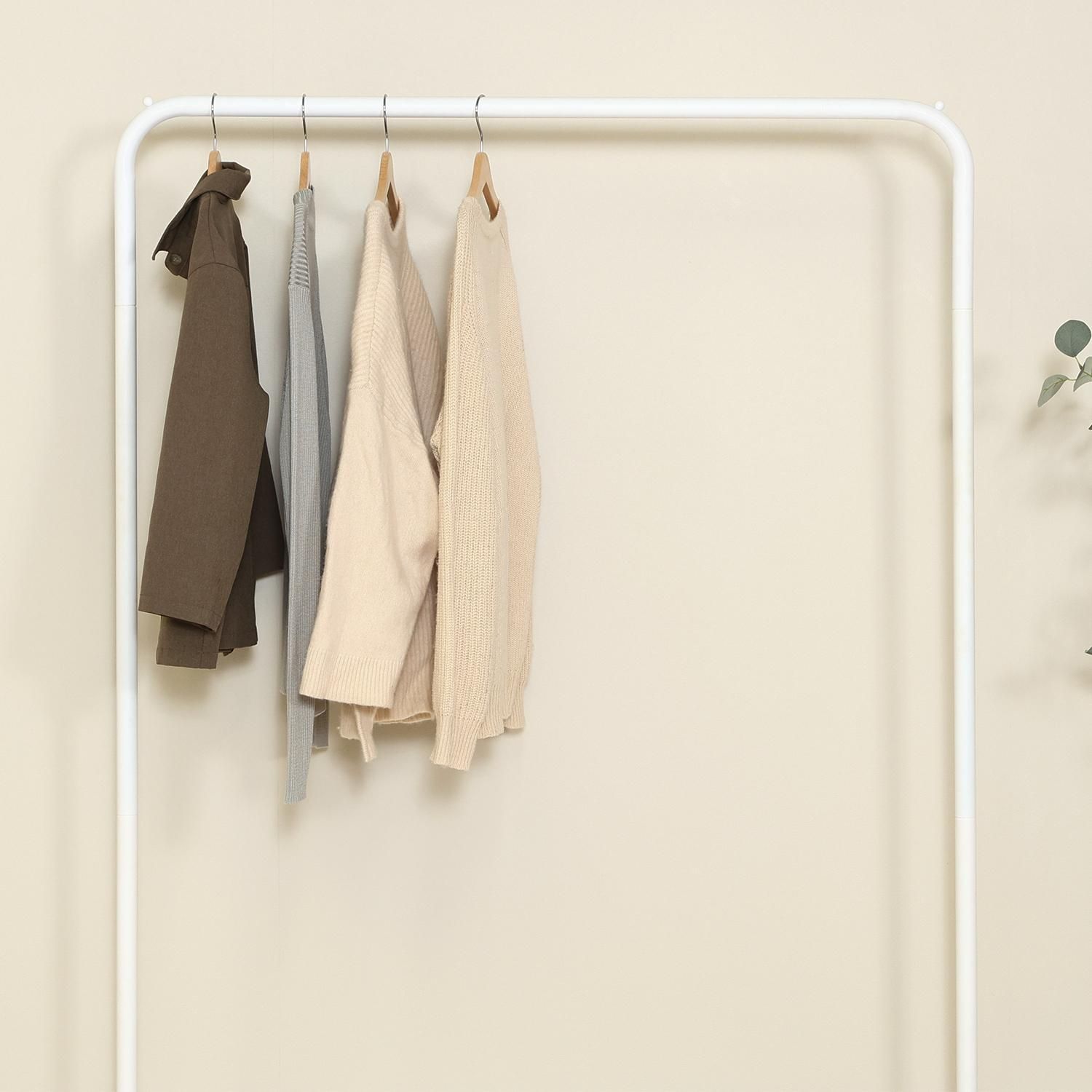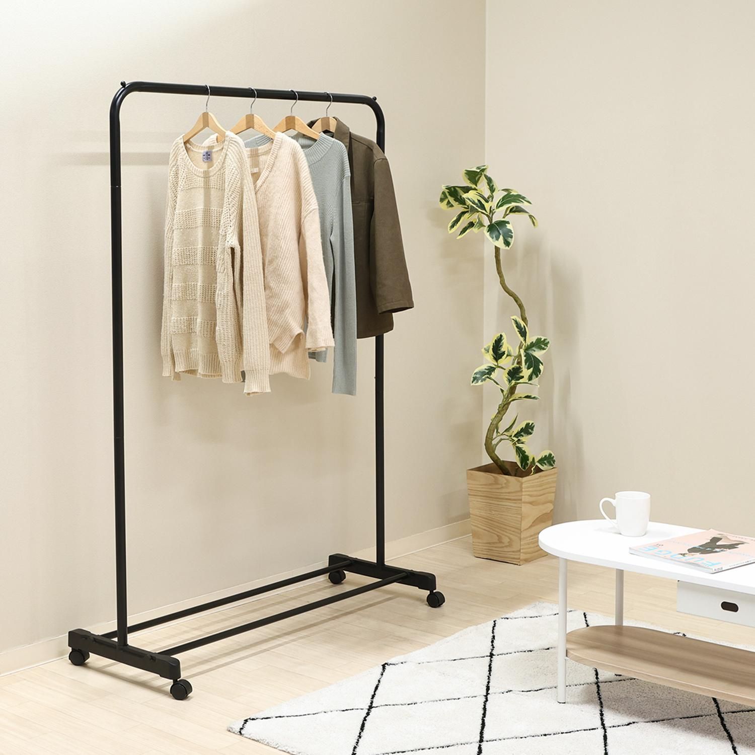 厚手のコートやジャケットも安心して掛けられる、丈夫なハンガーラックです。