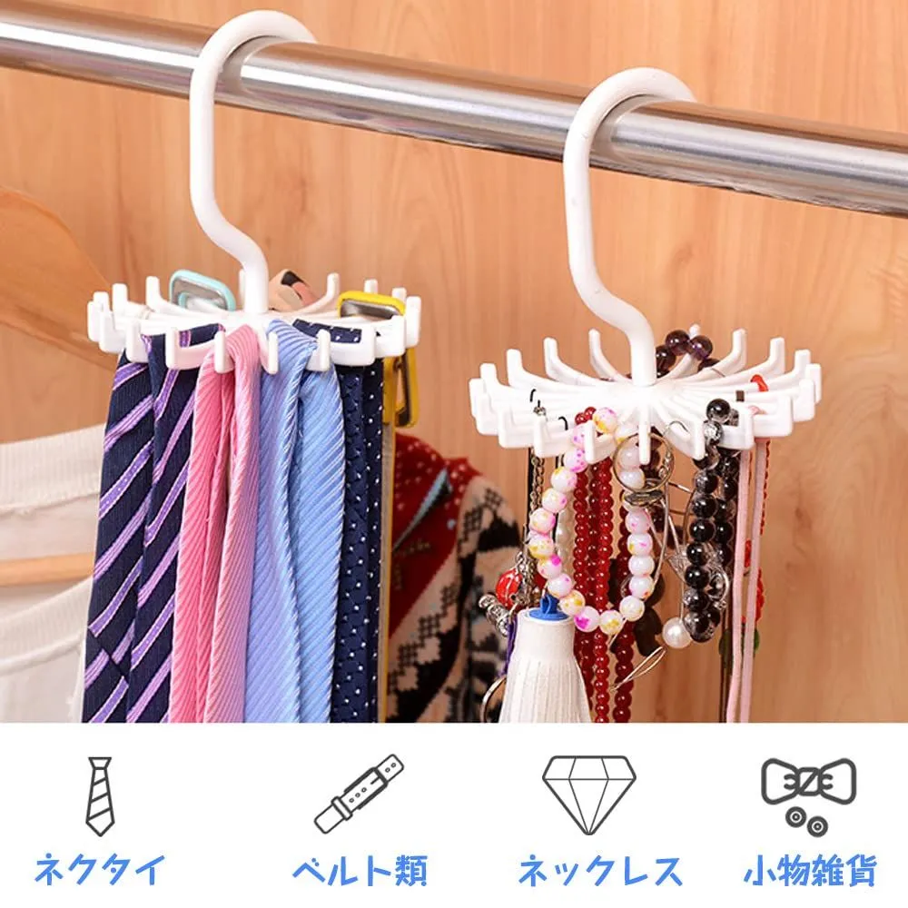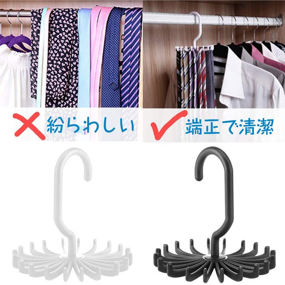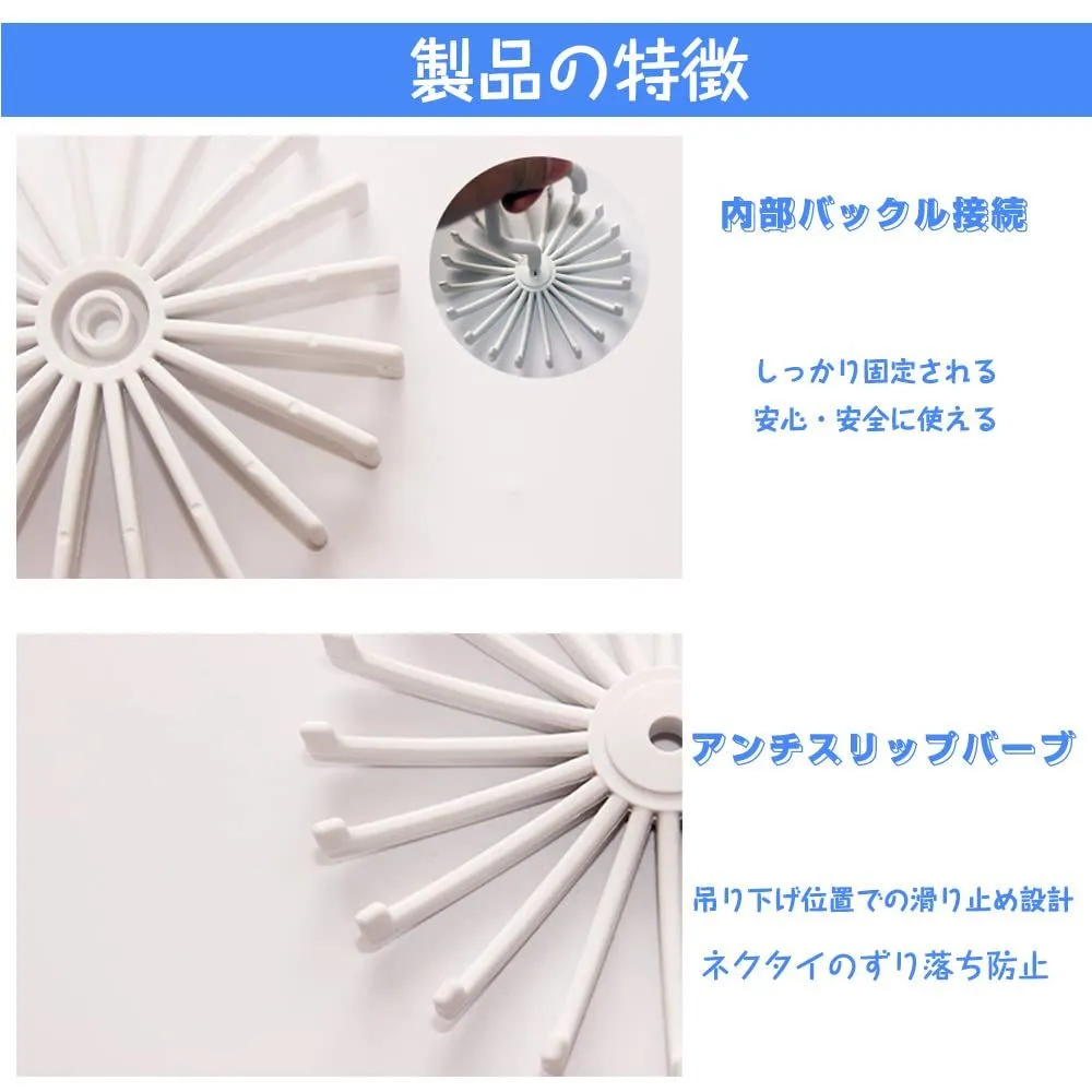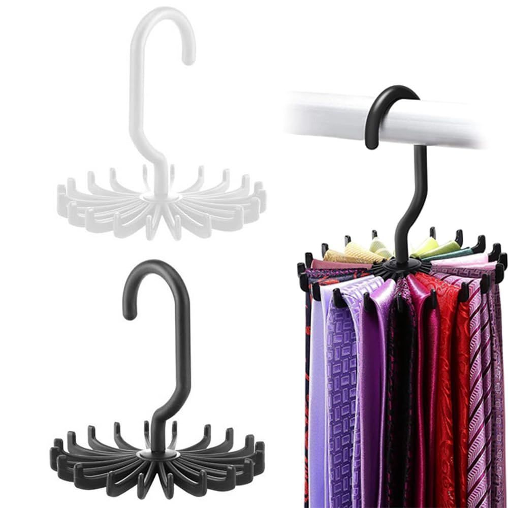 ネクタイ収納ハンガー 円形 360度回転 省スペース収納アイテム 20本のネクタイを収納可能 回転式ネクタイラック 収納フック ワードローブオーガナイザー収納用ハンガーホルダーフック (1白+1ブラック)