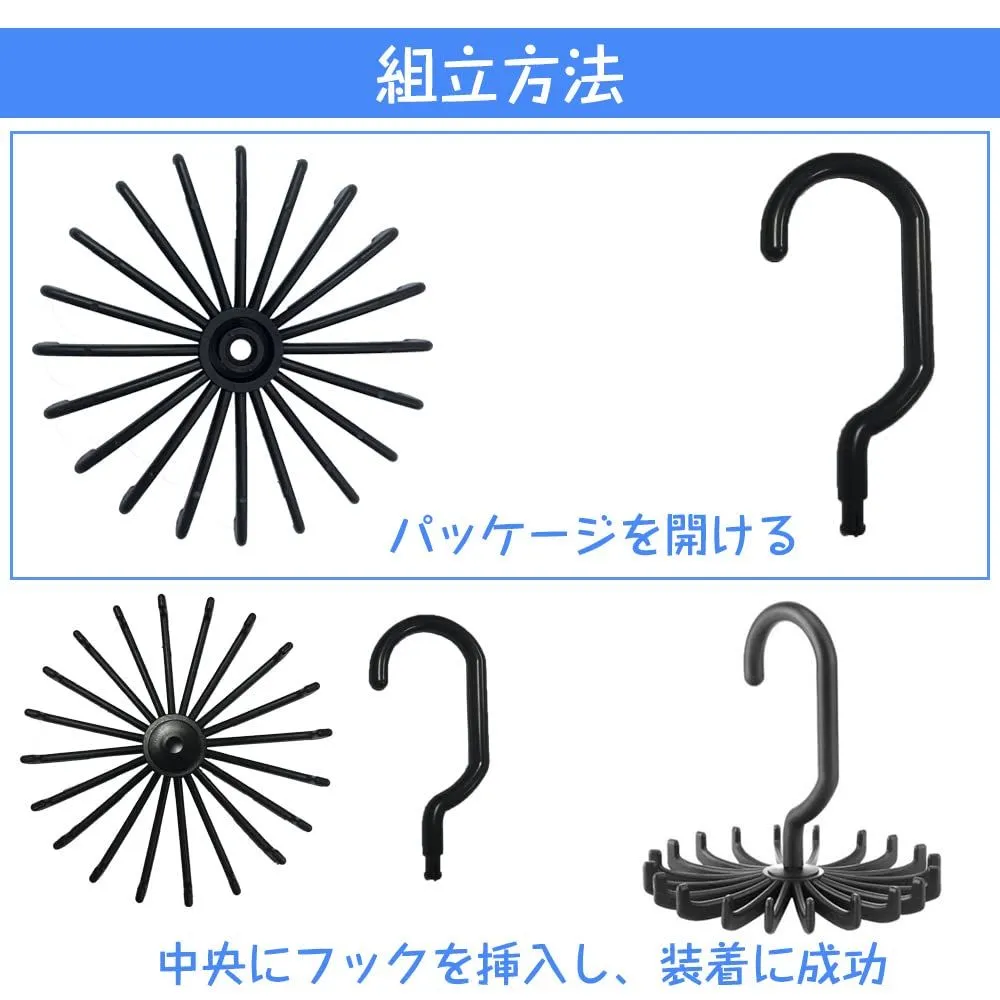 幅広い用途:家庭やオフィスなど、さまざまなシーンで活用できる回転式ネクタイラックです。ネクタイ、ベルト、スカーフ、ネックレス、ジュエリーなどの吊り下げに最適です。