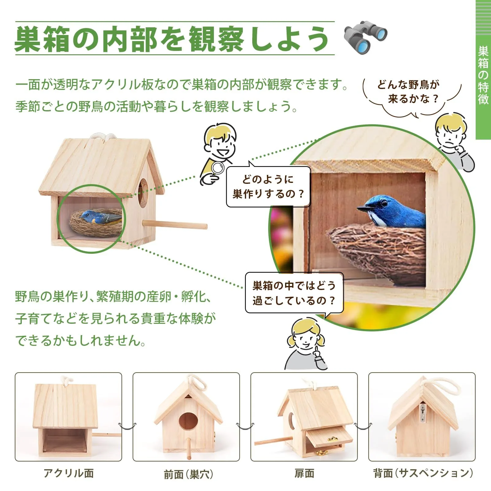 【野鳥用巣箱】 アクリル 鳥小屋 バードハウス 完成品 吊り下げ 木製 野鳥観察 鳥の巣 巣箱 野鳥 屋外 バードウォッチング