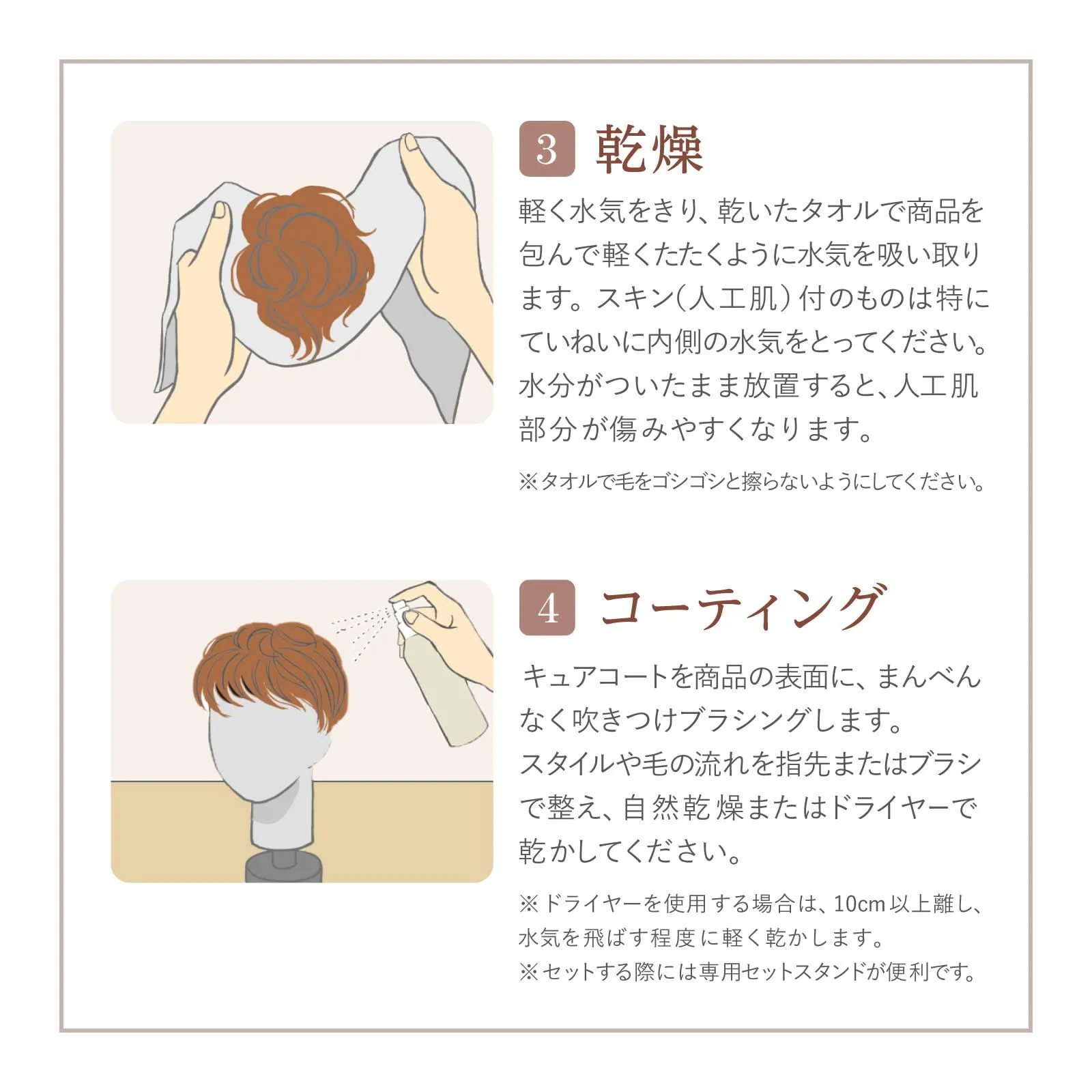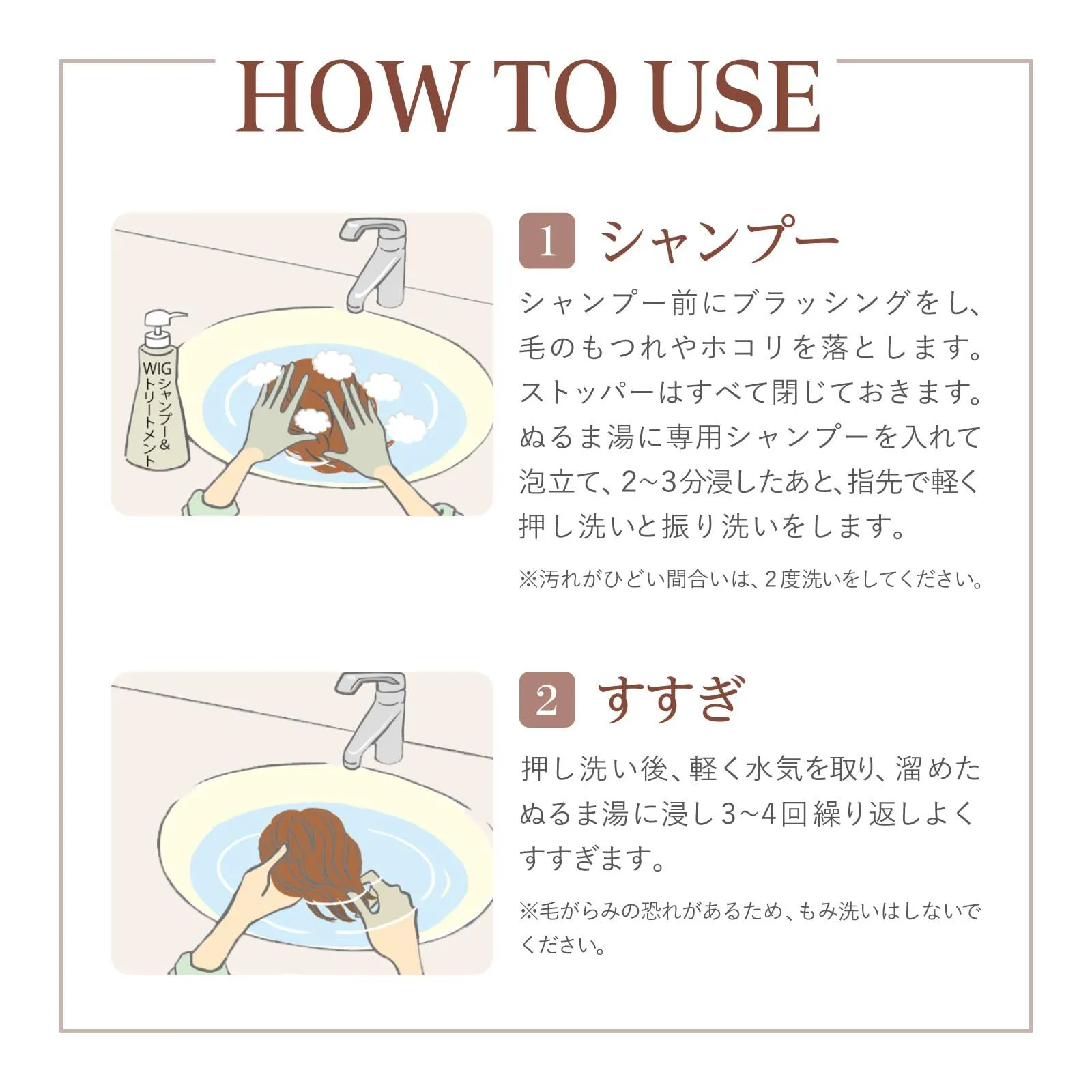 使用方法:片側の紙をはがし、WIGの接着面にテープを貼ります。WIGをかぶった後、反対側の紙を剥がし地肌に貼ります。