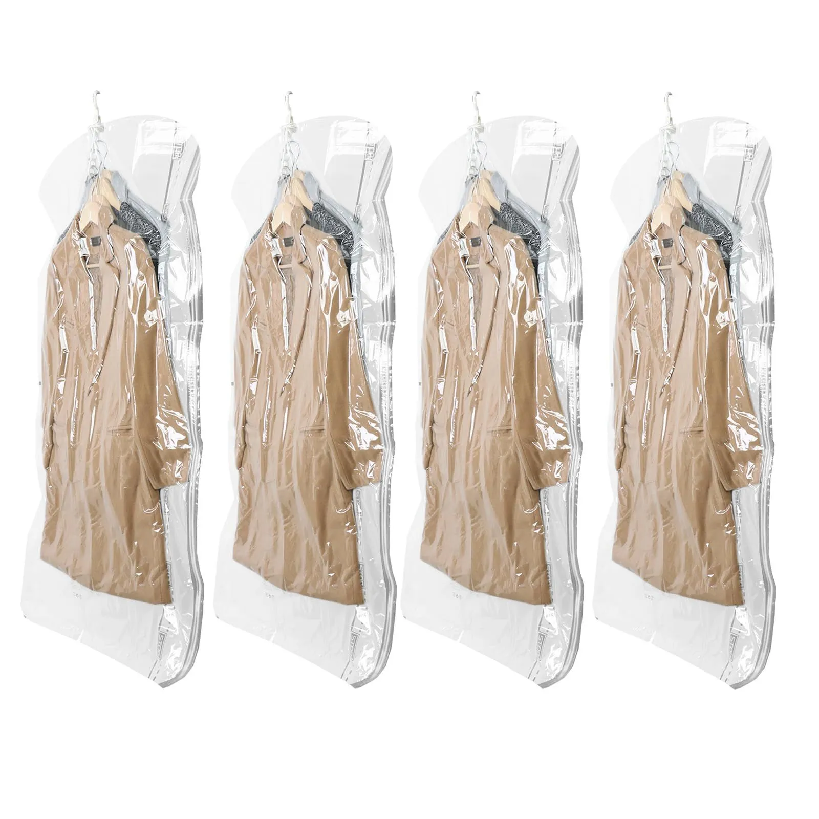 TAILI 衣類圧縮袋 吊るせる圧縮袋 洋服 吊り下げ 真空バッグ 衣類カバー 省スペース 掃除機対応 バッグハンガー 着物収納 コート ジャケット スーツ用 花火大会 取り付け簡単 繰り返し利用可能 Lサイズ 4枚組 透明