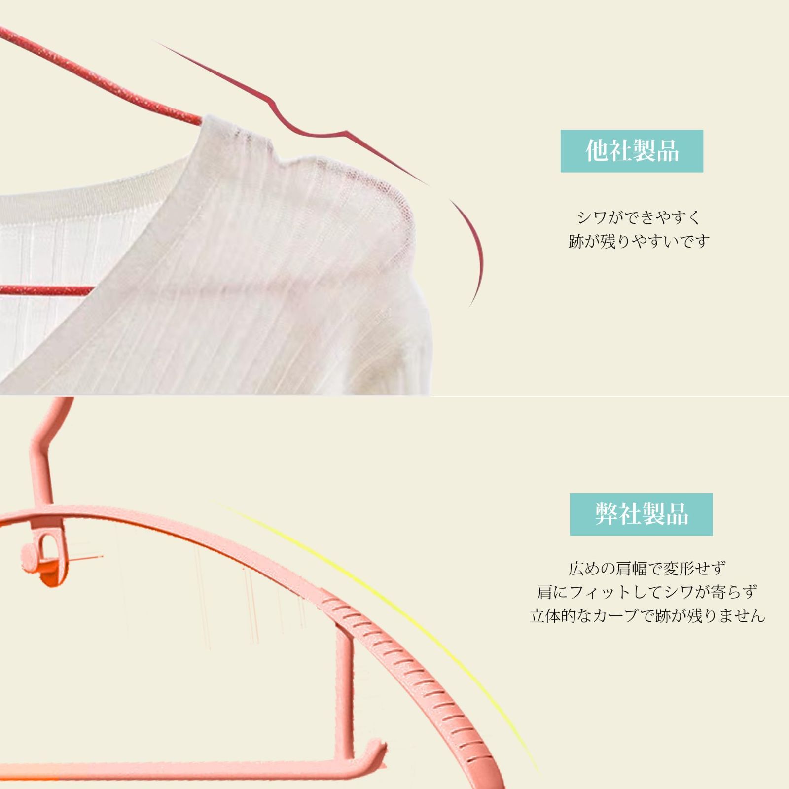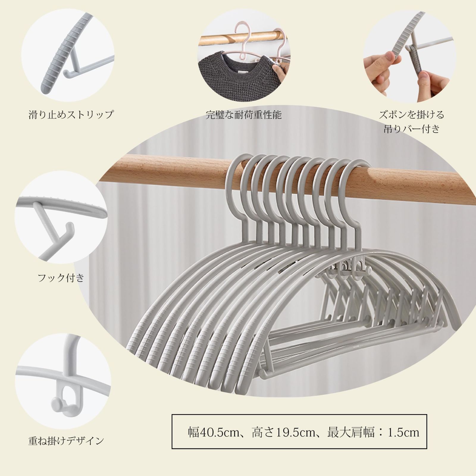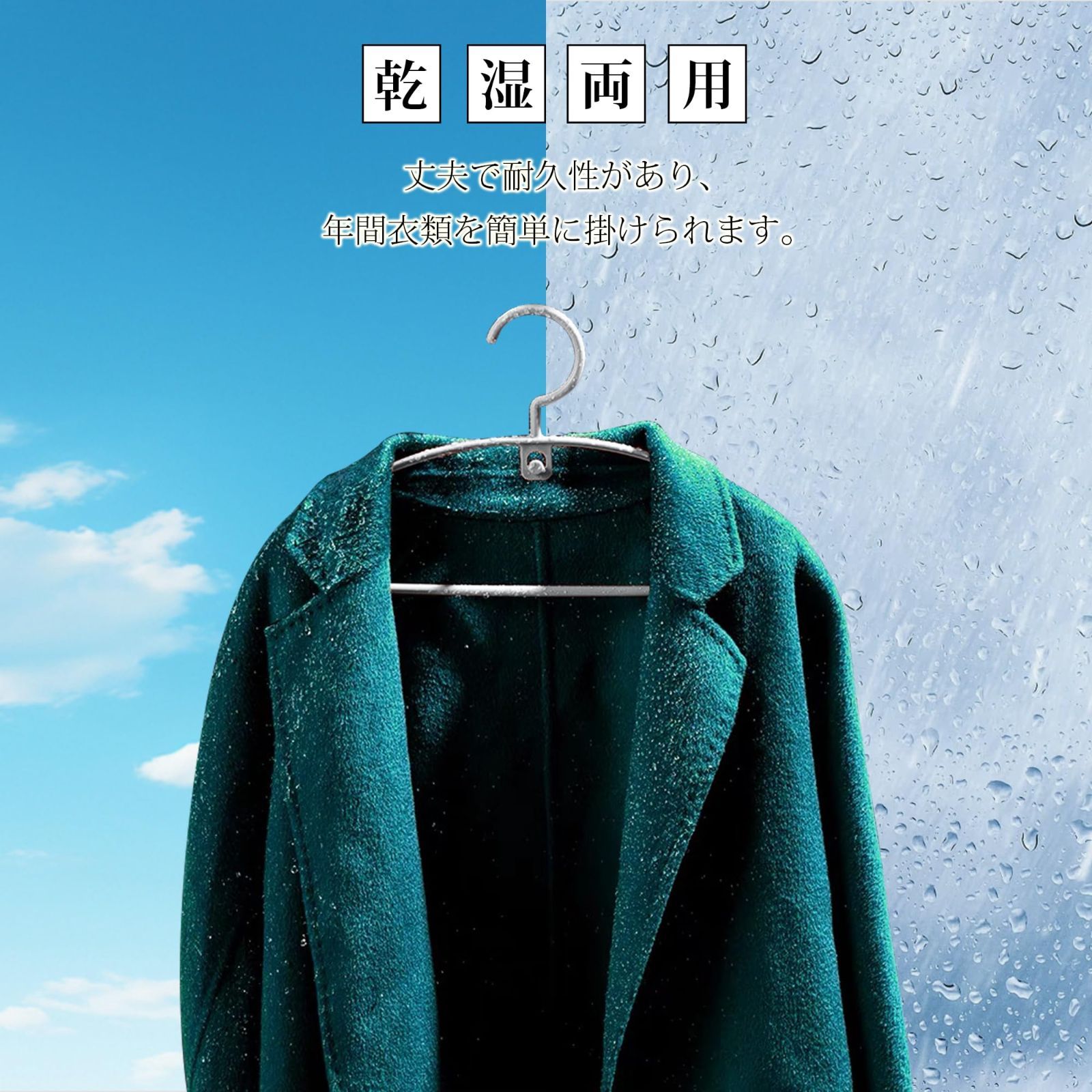 【滑り止め】滑り止め設計を採用し、表面に特殊な処理を施すことで、衣類の滑落を防ぎ、湿った衣類や薄手の衣類でも安定して掛けられます。
