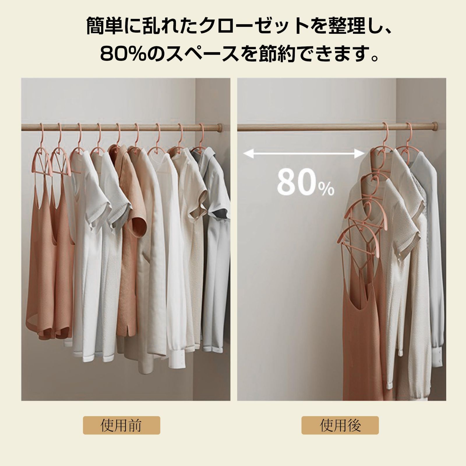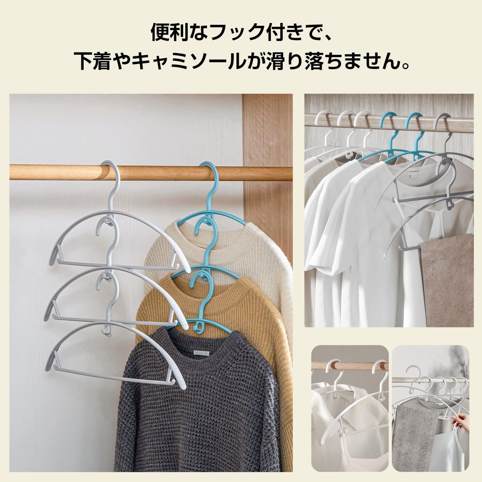 【連結フック付き】ハンガーの上部に連結フックが付いており、複数のハンガーを簡単に連結できます。これにより、クローゼットをすっきり整理し、スペースを最大限に活用できます。