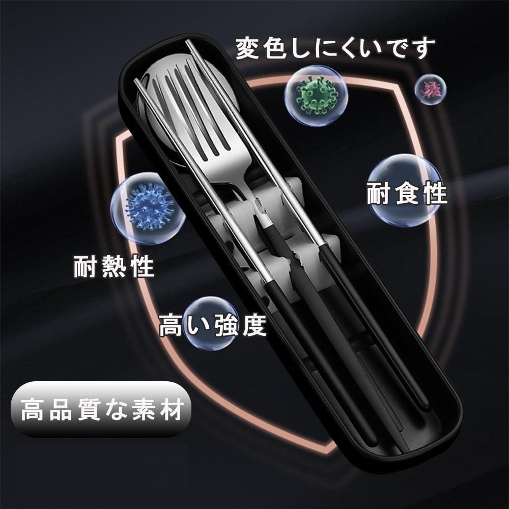 食器セット軽量 通勤 ケース付き 通学 3点セット フォーク 遠足 スプーン 携帯便利 箸 ステンレス鋼 弁当箱用 カトラリーセット キャンプ用(ブラックシルバー) KALOLINNA