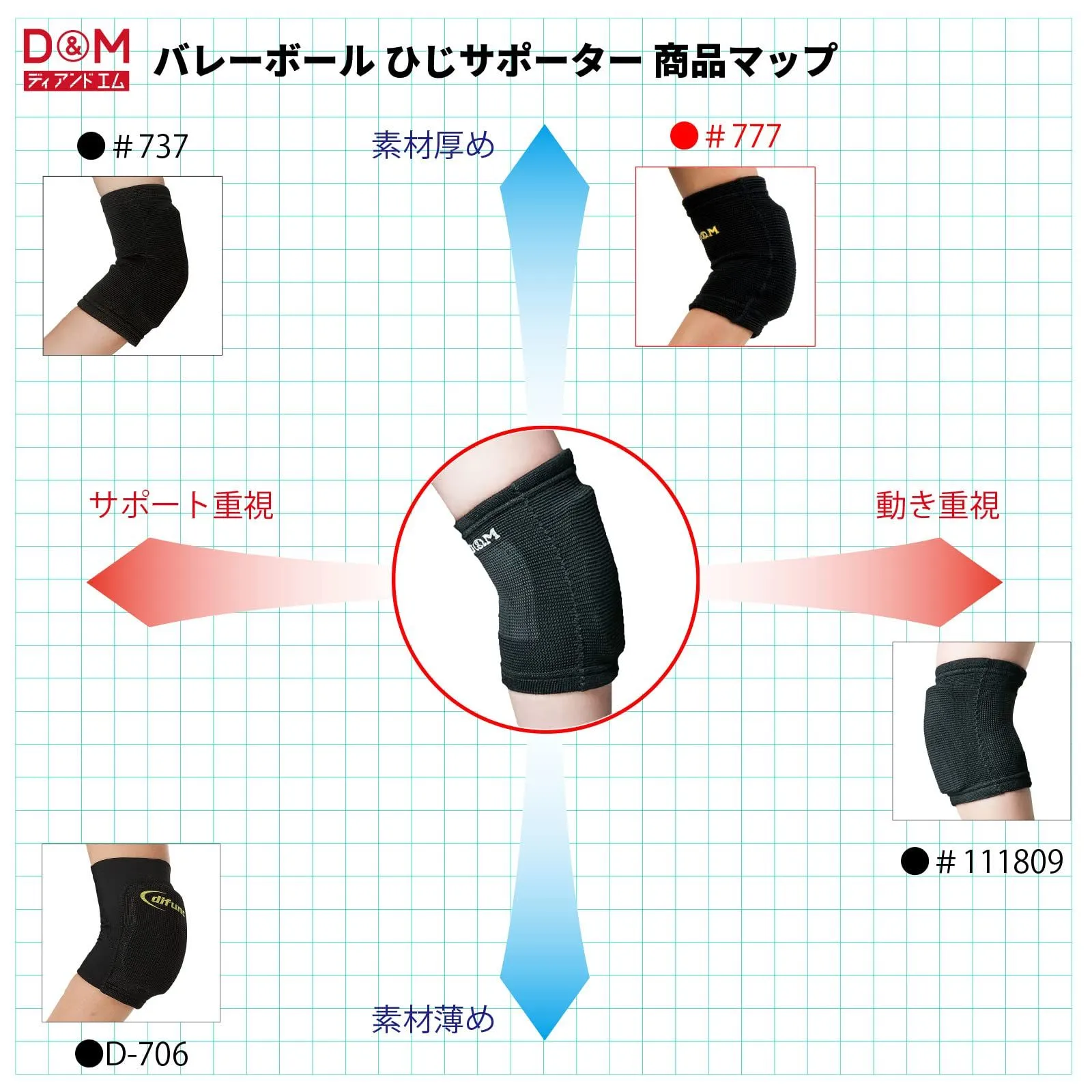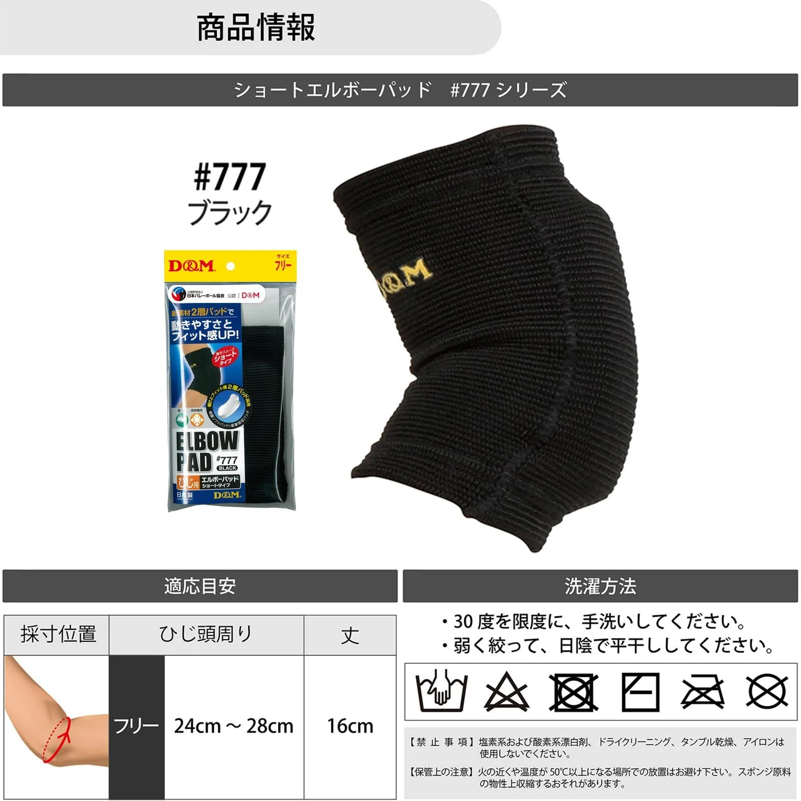 D&M(ディーアンドエム) 肘サポーター バレーボール 肘用 13mm厚 薄型パッド ショートタイプ 日本製 左右兼用 フリーサイズ 1個入 777 固定 エルボーパッド サポート 通気性 柔軟 伸縮 吸汗 速乾 ユニセックス JVA公認 スポーツ