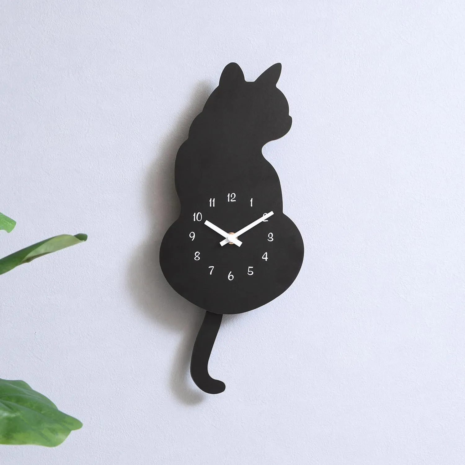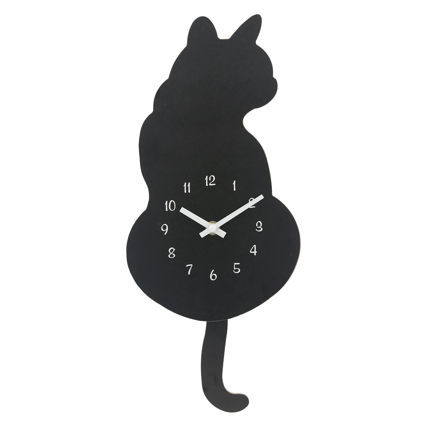 可愛らしい子猫のシルエットの壁掛け時計おしゃれな手書き風のシンプルな文字盤。子猫がしっぽを振っているように揺れる振り子が時を刻みます。。※ムーブメントと振り子の駆動用で単三電池が2個必要です(別売り)。 ご注意(免責)>必ずお読みください