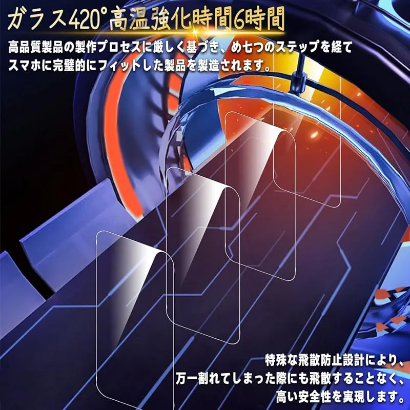 【高品質の材料の9H硬度】 とレンズ保護フィルムはすべて旭硝子で作られており、スマホ保護フィルムの中で最高レベルの9H硬度に達しています、4.5時間以上の高温焼入れ処理を行い、スクリーンプロテクターの圧強度は 125mpa に達し、通常 ガラス の 5 倍になりました。しかもスクリーンプロテクターは衝撃を抑えるシリコンコーティングを内蔵しており、万が一ガラスが割れても、ガラスの破片が飛散しません。ハードコーティング技術は、衝撃を最小限に抑えて画面の破損を抑え、すり傷防止や指紋防止もしっかりとスクリーンを保護します。 *大切な携帯電話の液晶画面を保護し、衝撃や表面のキズを防止します。