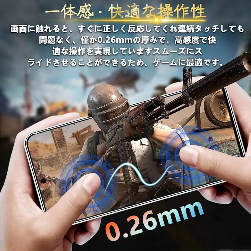 【汚れ防止&指紋防止 / 防水 / 耐油性】保護フィルム は、石材ナノコーティング層の最新の指紋防止技術を使用していますので、通常フィルム のようなラフなタッチは一切ありません。画面がさらさらで指紋が付きにくい、高感度で快適な操作を実現、汗防止、スムーズにゲームプレイ体験、長時間の楽しみなどの利点もあります。*万が一付着した指紋、水滴、汗、化粧品などは簡単に拭き取れます。市場に出回っている99%の携帯電話ケースと互換します;強化ガラスのサイズは携帯ケースを取り付けるためのスペースをよいし、両側が浮き上がらないようにします。何百もの携帯電話ケースがテストした後、適応率は 99% と高くなり、フィルム対応できる携帯ケースの心配がありません。
