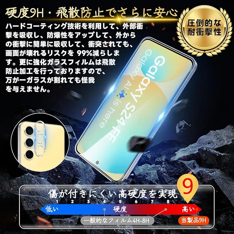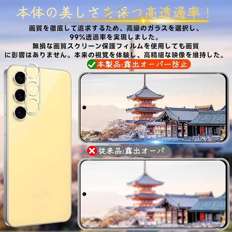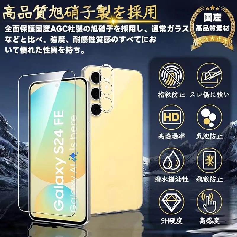 対応 Galaxy S24 FE 5G フィルム 2*ガラス + 2*レンズ保護フィルム 1*取り除き発泡板 - 国産旭硝子材質 薄型 S24 FE 5G 強化ガラス 保護フィルム 高光沢 液晶 Touch対応 SENXLL-s24FEG04 1