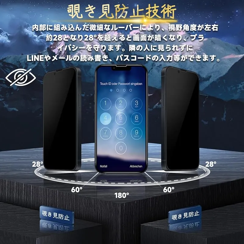 【梱包内容】 1×素敵な梱包箱 1×覗き見防止 強化ガラス保護フィルム 1×クリア 強化ガラス保護フィルム2xレンズ保護フィルム 1×取扱説明書 1×ガイド枠付き