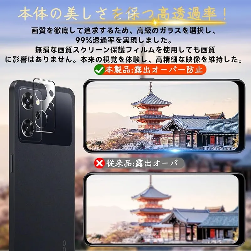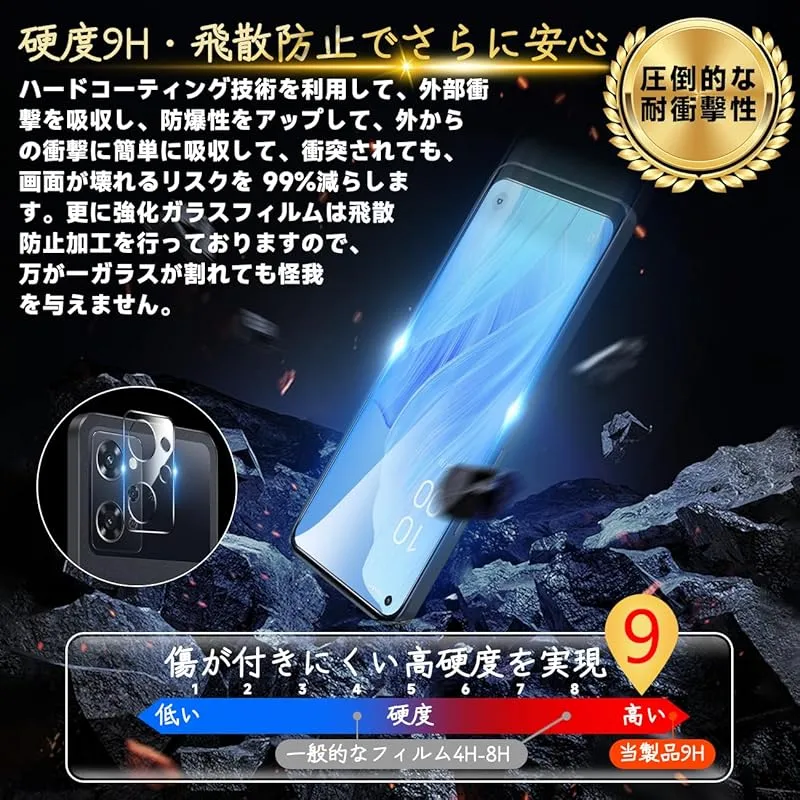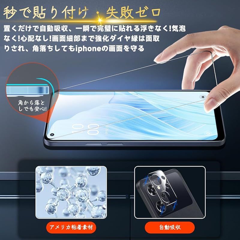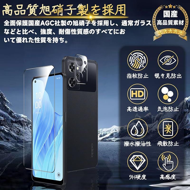 OPPO Reno9 A / Reno7 A 保護フィルム 【2* フィルム + 2* レンズ保護フィルム】国産旭硝子材質 薄型 強化ガラス フィルム 指紋防止 高光沢 液晶 ケース 9H硬度 厚さ0.26mm超薄型 高透過率 気泡なし ラウンドエッジ加工 0