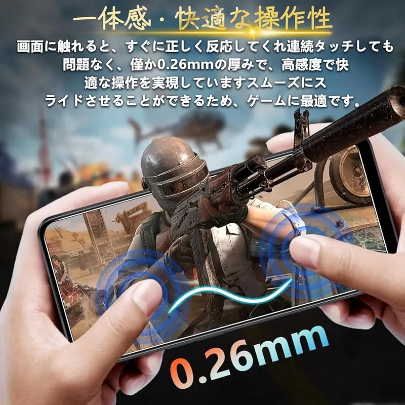 【汚れ防止&指紋防止 / 防水 / 耐油性】保護フィルム は、石材ナノコーティング層の最新の指紋防止技術を使用していますので、通常フィルム のようなラフなタッチは一切ありません。画面がさらさらで指紋が付きにくい、高感度で快適な操作を実現、汗防止、スムーズにゲームプレイ体験、長時間の楽しみなどの利点もあります。*万が一付着した指紋、水滴、汗、化粧品などは簡単に拭き取れます。市場に出回っている99%の携帯電話ケースと互換します;強化ガラスのサイズは携帯ケースを取り付けるためのスペースをよいし、両側が浮き上がらないようにします。何百もの携帯電話ケースがテストした後、適応率は 99% と高くなり、フィルム対応できる携帯ケースの心配がありません。