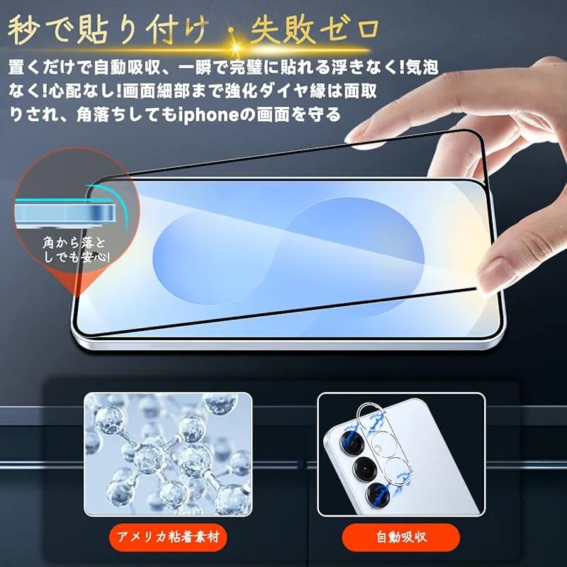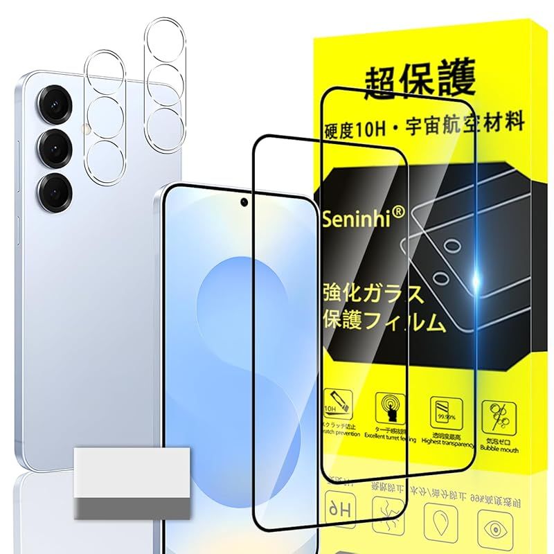 【2* フィルム + 2* レンズ保護フィルム + 1*クリーニングツール】国産旭硝子材質 Galaxy S255G 薄型 強化ガラス GalaxyS255G 保護フィルム 製造元:seninhi 商品番号:SENXLL-Galaxy S25-10H 商品内容:Galaxy S25 5G-10H 色:10H