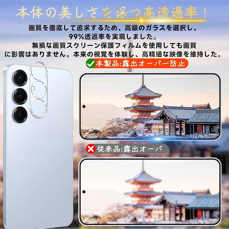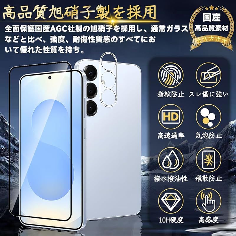対応 Galaxy S25 5G ガラスフィルム GalaxyS25 5G 指紋防止 【2* フィルム + 2* レンズ保護フィルム + 1*クリーニングツール】国産旭硝子材質 Galaxy S255G 薄型 強化ガラス GalaxyS255G 保護フィル 0