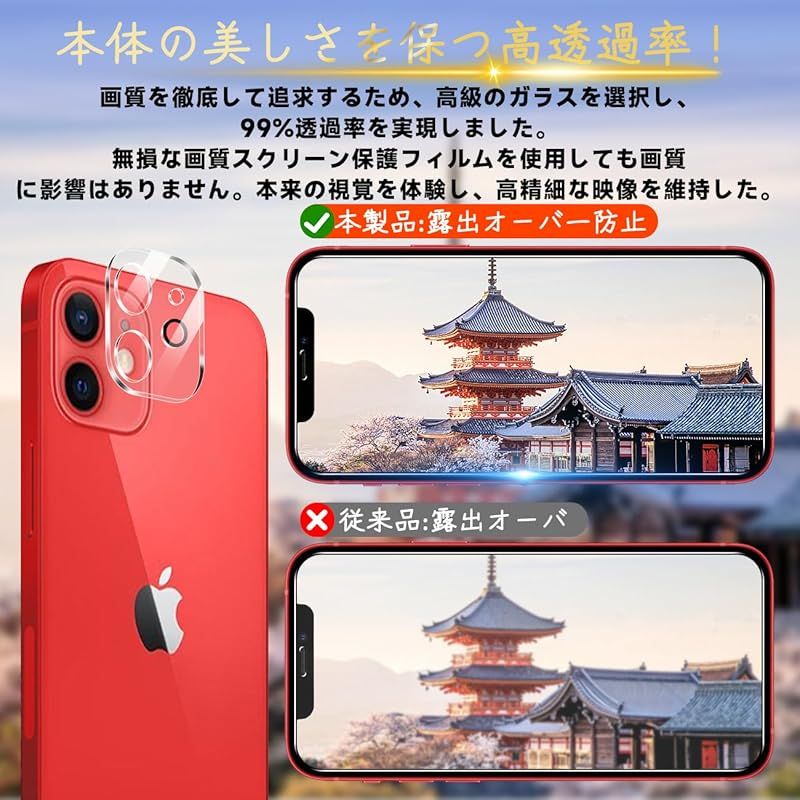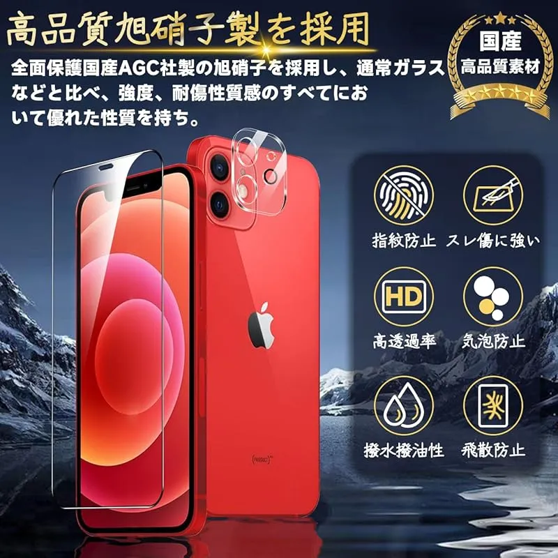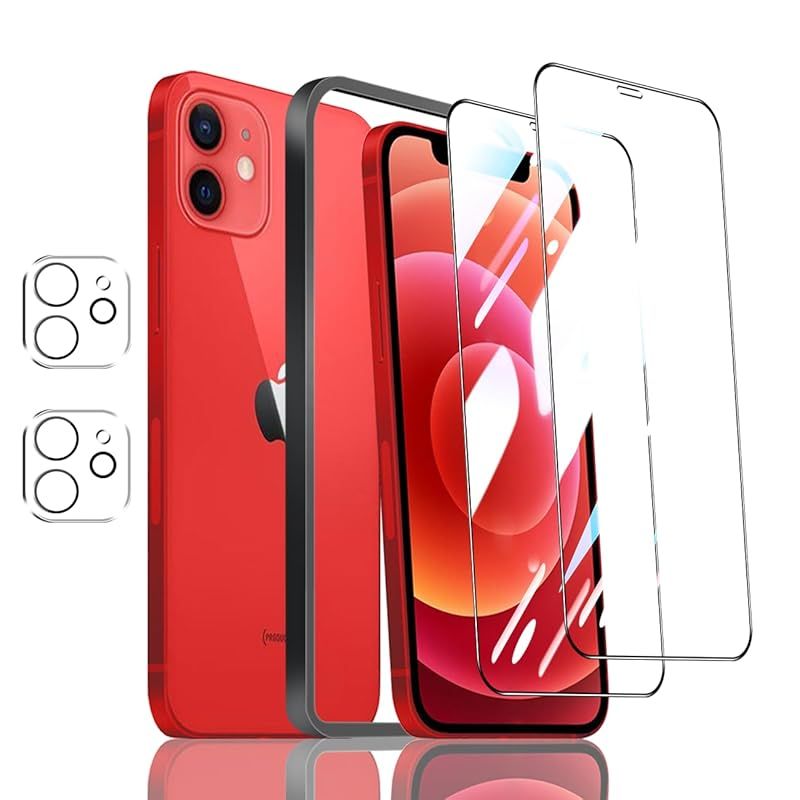 対応 iPhone 12 フィルム ガイド枠付き 【2* iPhone12 ガラスフィルム + 2* iPhone12 レンズ保護フィルム + 1* iPhone12ガイド枠付き 】表面硬度9H アイフォン12 強化ガラス いpほね12 用 保護フィルム 0