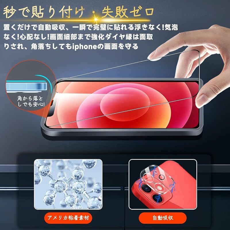 【専用設計・簡単に貼り付け】Apple iphone12 6.1インチ アイフォン12 いpほね12 専用液晶画面保護ガラスフィルム。 本商品は日本素材のAGC 旭硝子 素材を採用して作られております。 フィルムのシリコン自己吸着層により、スチールフィルムを携帯電話に合わせて軽く置くだけで、気泡が入らないように簡単に取り付けられます。 (重点説明:フロントカメラのカメラ穴についてですが、ほこり・異物などの堆積を防止するため、ガラスフィルムにカメラ穴を開けていません。Seninhiのガラスフィルム 、通過率は99.9%なので、フロントカメラの正常使用に全く影響が出ません。) *モデルによってサイズが異なりますので、モデルを確認してご購入ください。