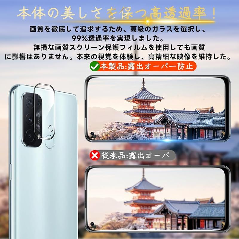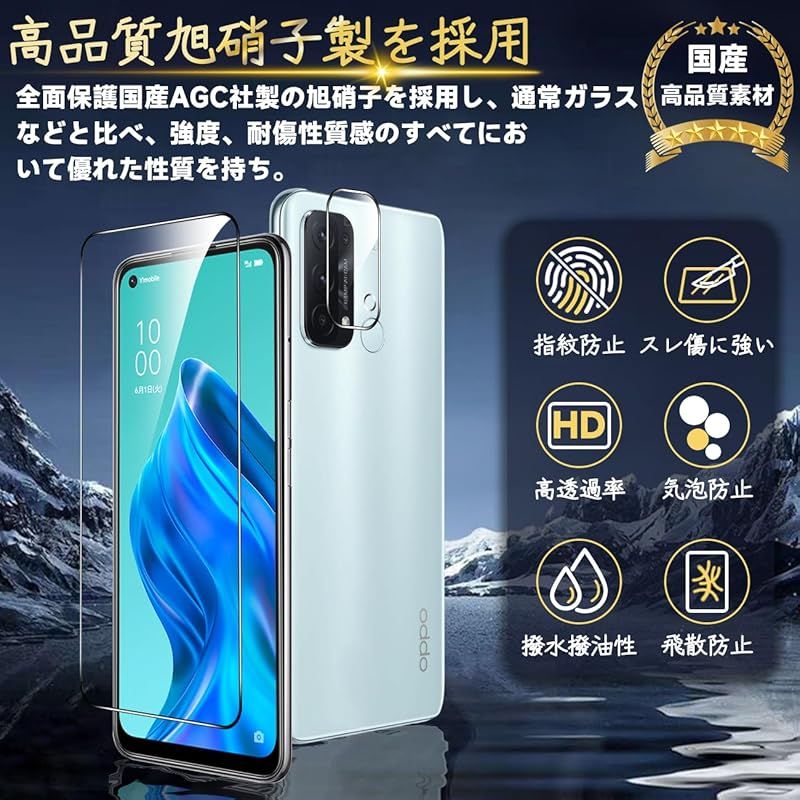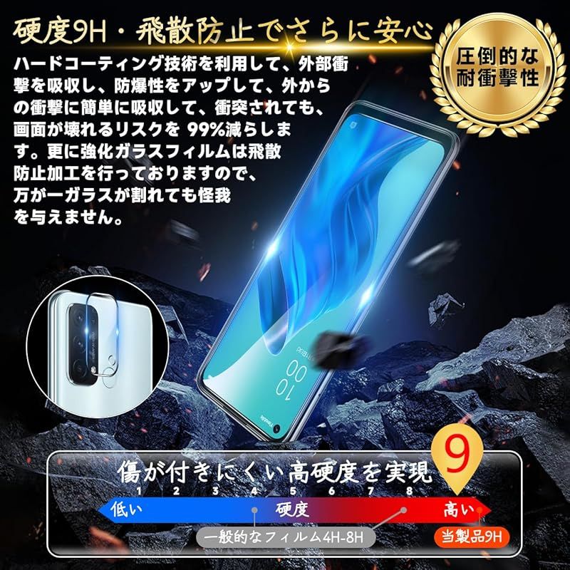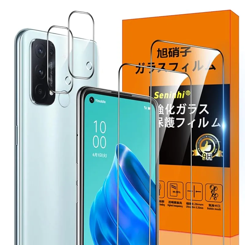 対応 OPPO Reno5 A フィルム 【Seninhi 2+2枚セット: 2* OPPO Reno5 A 強化ガラス + 2* OPPO Reno5 A レンズ保護フィルム 】 OPPO Reno5A ガラスフィルム 指紋ロック解除対応 ウィッシュ 高 1