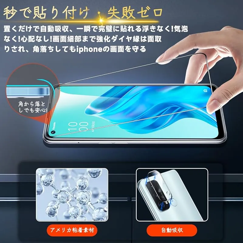 【専用設計・簡単に貼り付け】OPPO Reno5 A 専用液晶画面保護ガラスフィルム。本商品は日本素材のAGC 旭硝子 素材を採用して作られております。フィルムのシリコン自己吸着層により、スチールフィルムを携帯電話に合わせて軽く置くだけで、気泡が入らないように簡単に取り付けられます。(重点説明:フロントカメラのカメラ穴についてですが、ほこり・異物などの堆積を防止するため、ガラスフィルムにカメラ穴を開けていません。Seninhiのガラスフィルム 、通過率は99.9%なので、フロントカメラの正常使用に全く影響が出ません。)*モデルによってサイズが異なりますので、モデルを確認してご購入ください。