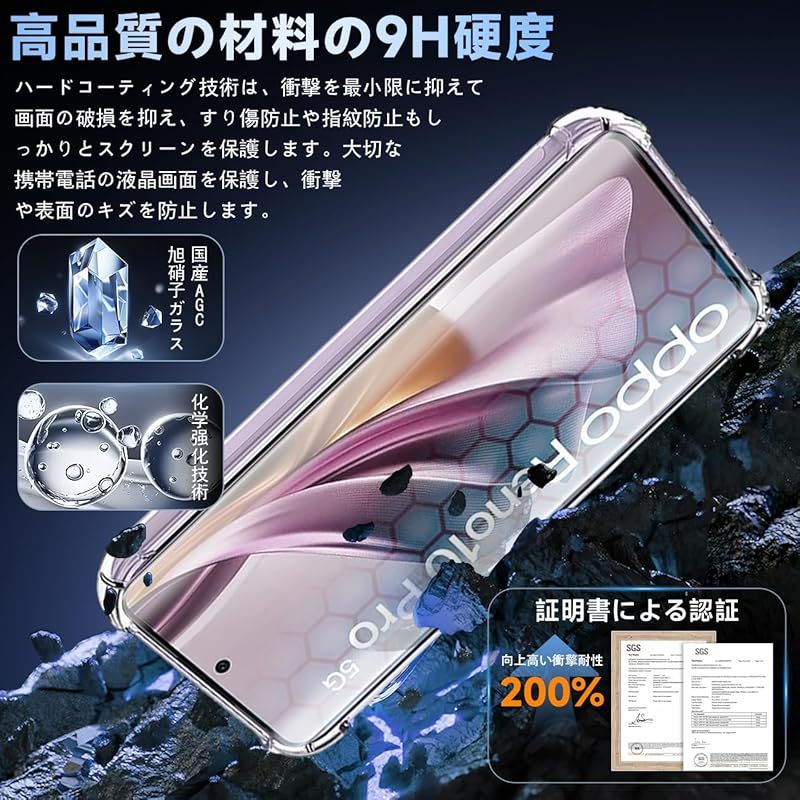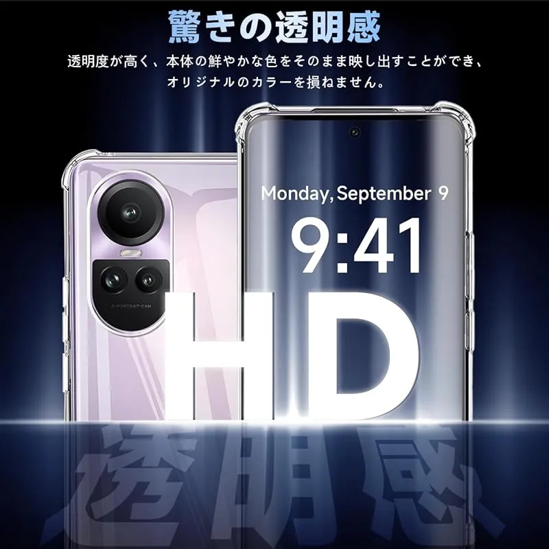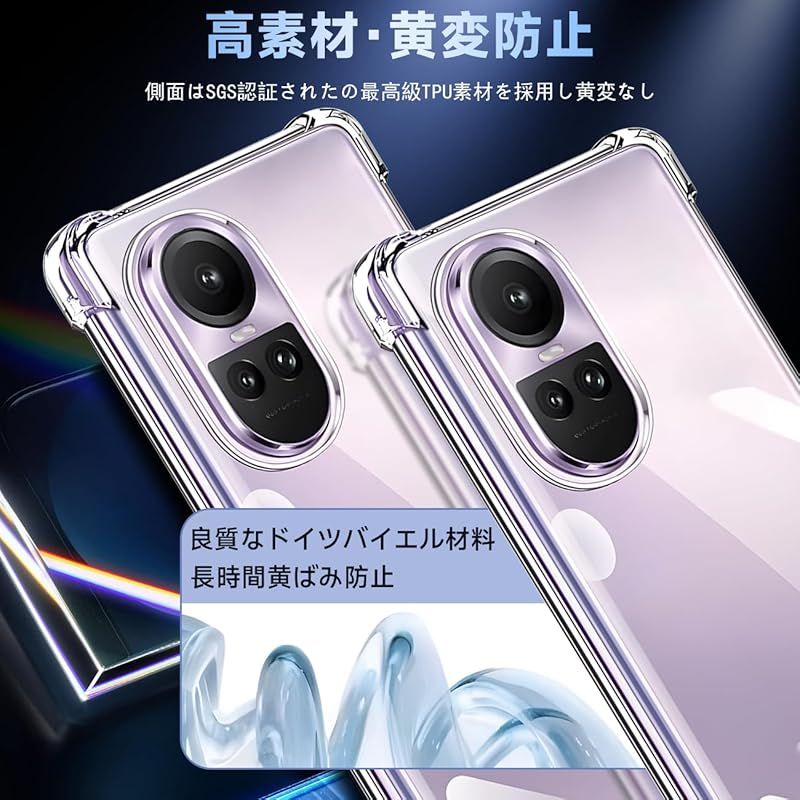 【360°フルガード 軍用グレード、高い耐衝撃性】 本製品はに対応 OPPO Reno10 Pro 5G する透明ケースです。外側のシェルは高い耐黄い耐性を備えた最先端技術ADMを採用しております。しかも環境にやさしく、無毒で無味の高品質の素材を使用して、酸化防止処理しており、長年でも黄色くなりません。多数回のテストした後、2mの高さで様々な角度から26回落としましたが、携帯電話が全然傷がありませんでした!更に四隅の耐衝撃性は通常の携帯電話ケースの5倍に達し、携帯電話を全面的に保護できます。(ご注意:ご購入前機種をよくご確認くださいね。間違った機種の購入による使えないことを避けてください)