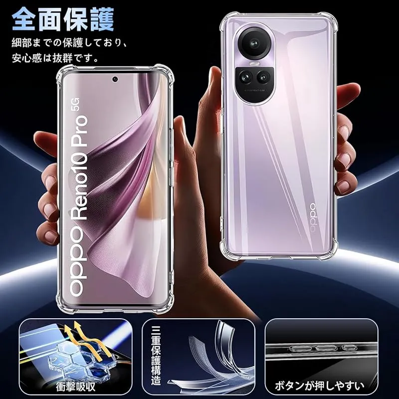 対応 OPPO Reno10 Pro 5G ケース クリア ケース OPPO Reno10 Pro 5G カバー TPU 保護ケース カバー背面 + OPPO Reno 10 Pro 5G ガラスフィルム OPPO Reno10Pro 5G フィルム フィ 0