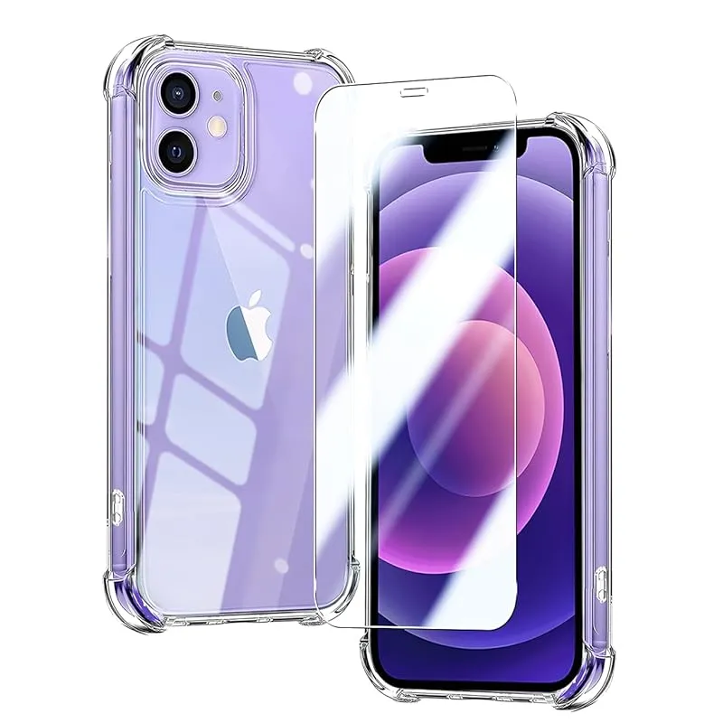 対応 iPhone12 ケース クリア ケース アイフォン12 カバー iPhone12 TPU 保護ケース カバー背面 + ガラスフィルム あいほん12 フィルム 日本旭硝子製 フィルム 強化ガラス 硬度9H 高透過率 飛散防 強化ガラス + ショート 0