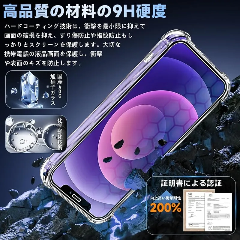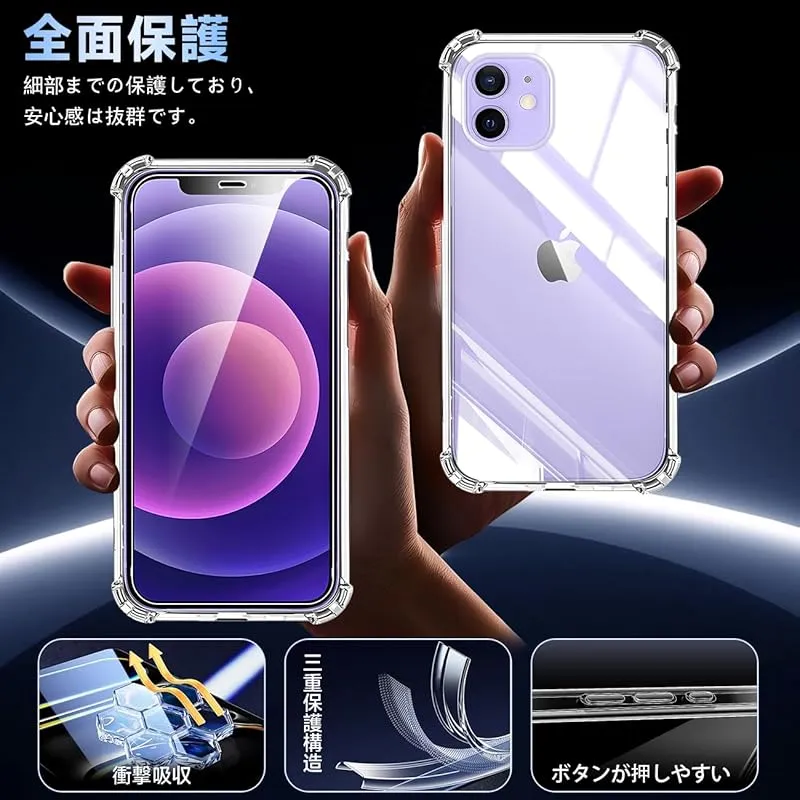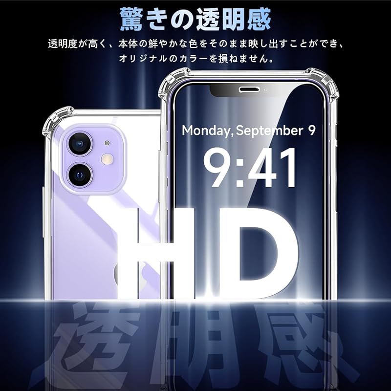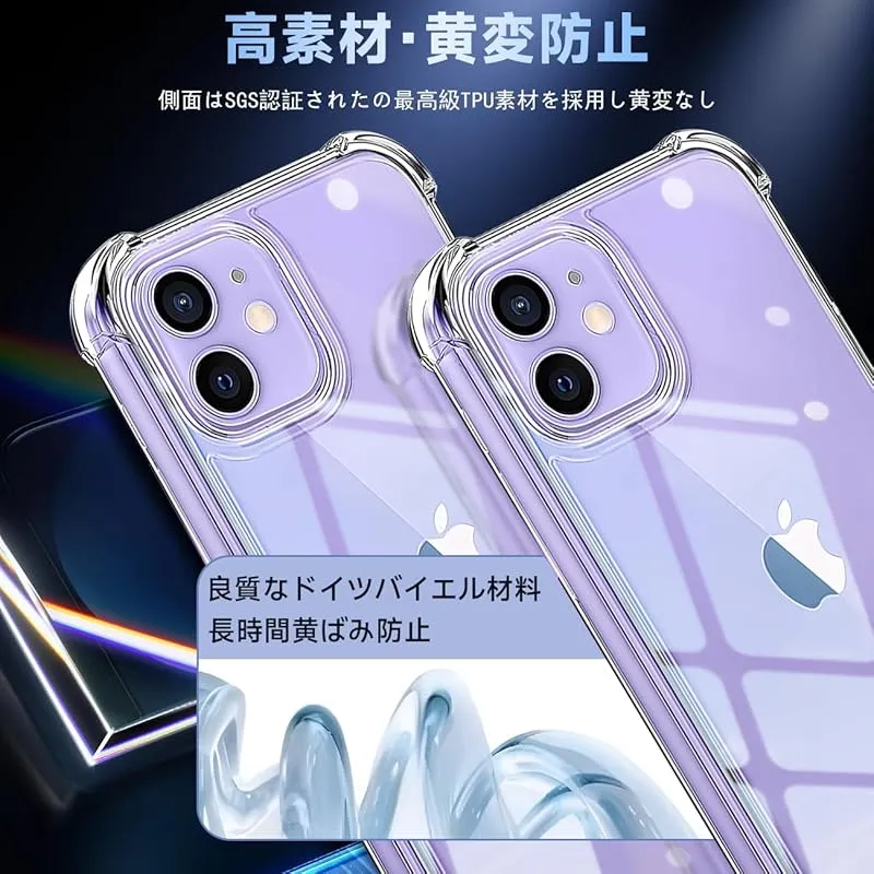 【360°フルガード 軍用グレード、高い耐衝撃性】 本製品はに対応 apple iPhone12 アイフォン12 あいほん12 する透明ケースです。外側のシェルは高い耐黄い耐性を備えた最先端技術ADMを採用しております。しかも環境にやさしく、無毒で無味の高品質の素材を使用して、酸化防止処理しており、長年でも黄色くなりません。多数回のテストした後、2mの高さで様々な角度から26回落としましたが、携帯電話が全然傷がありませんでした!更に四隅の耐衝撃性は通常の携帯電話ケースの5倍に達し、携帯電話を全面的に保護できます。(ご注意:ご購入前機種をよくご確認くださいね。間違った機種の購入による使えないことを避けてください)