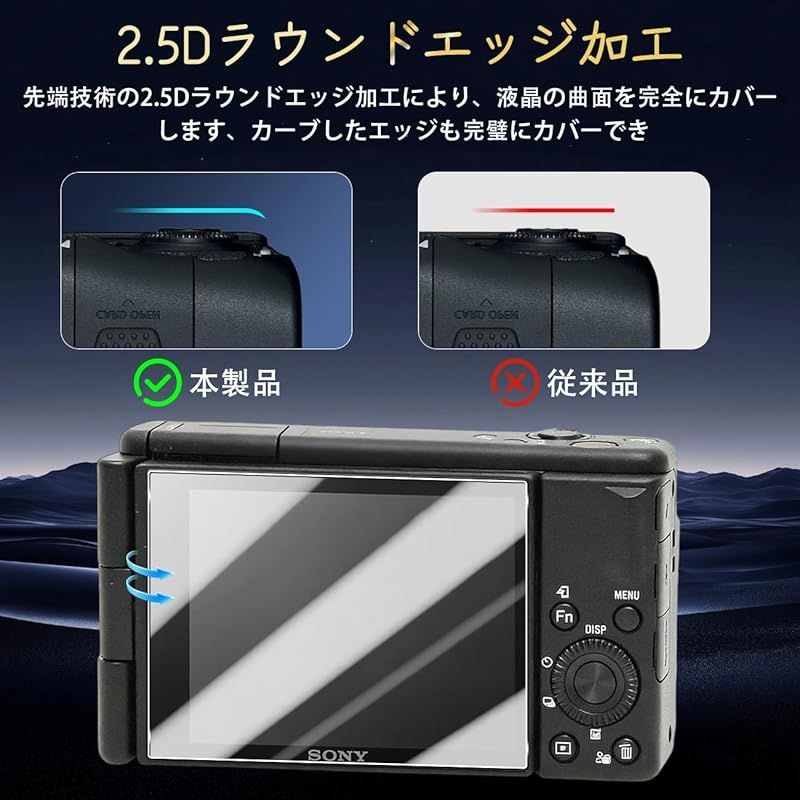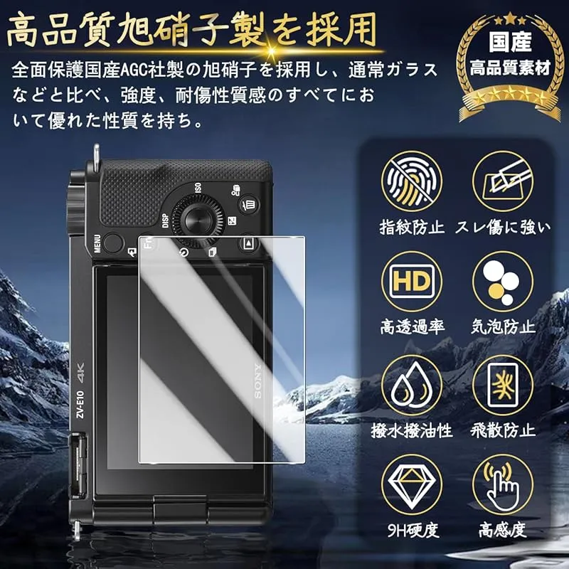 対応 SONY ZV-E10 / ZV-1F / ZV-1 / ZV-1 II ガラスフィルム 指紋防止 【3* フ ィルム + 1*クリーニングツール】国産旭硝子材質 SONY ZV-E10 薄型 強化ガラス 保護 高光沢 液晶 ケース 9H硬度 厚さ0 1