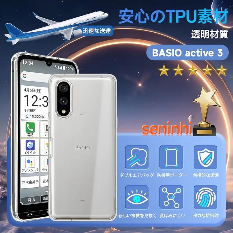 【対応機種】BASIO active 3 専用の最新の進化透明携帯電話ケースです。携帯電話本来の美しさと高級感を再現します。 TPU素材なので、伸縮性があり、取り付けと取り外しやすくて、落下や衝撃が分散して吸収できます。