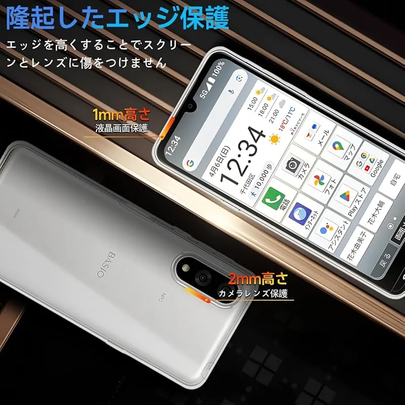 【優れた精度】BASIO active 3 ケース 薄くて頑丈で、程よいグリップ感があり、できるだけスマートフォン本体のスリムさを極力損なわないように設計した透明背面ケースです。位置、及び全てのスピーカー、ポート、ボタンを精密に設計しており、充電、及びヘッドフォンで音楽を聴いても機能的な使用を妨げなく、携帯電話に負荷をかけなく、簡単に取り付けることができます。