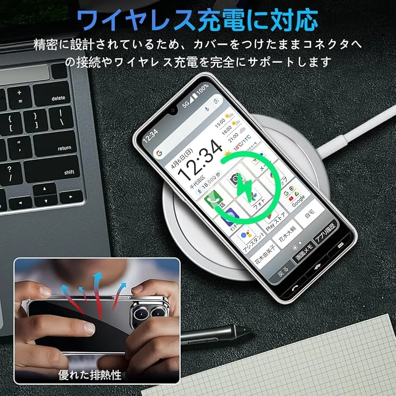 【優れた放熱性・ワイヤレス充電対応】 放熱性が高い設計なので、効果的に放熱し、バッテリーにとても優しいです。 本製品はガラスフィルムに邪魔しなく、顔認証等にも影響を与えなく、携帯電話の様々な機能を上手に便利にお使いいただけます。