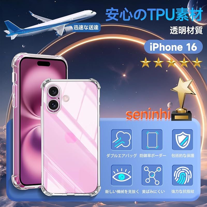 対応 iphone16 ケース apple iphone 16 クリア ケース カバー TPU いpほね16 保護ケース アイフォン16 カバー背面 iphone 16 シェル クバー ソフト 透明シェル ンプロテクター SENXLL-16T1 1
