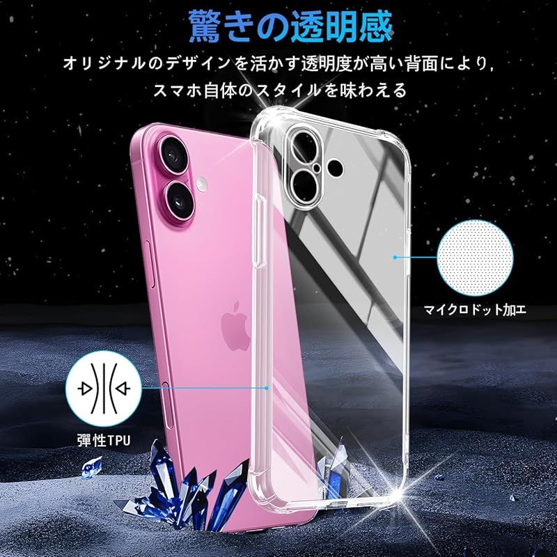 【対応機種】apple iphone16 さらさら アイフォン16 いpほね16 専用の最新の進化透明携帯電話ケースです。携帯電話本来の美しさと高級感を再現します。 TPU素材なので、伸縮性があり、取り付けと取り外しやすくて、落下や衝撃が分散して吸収できます。