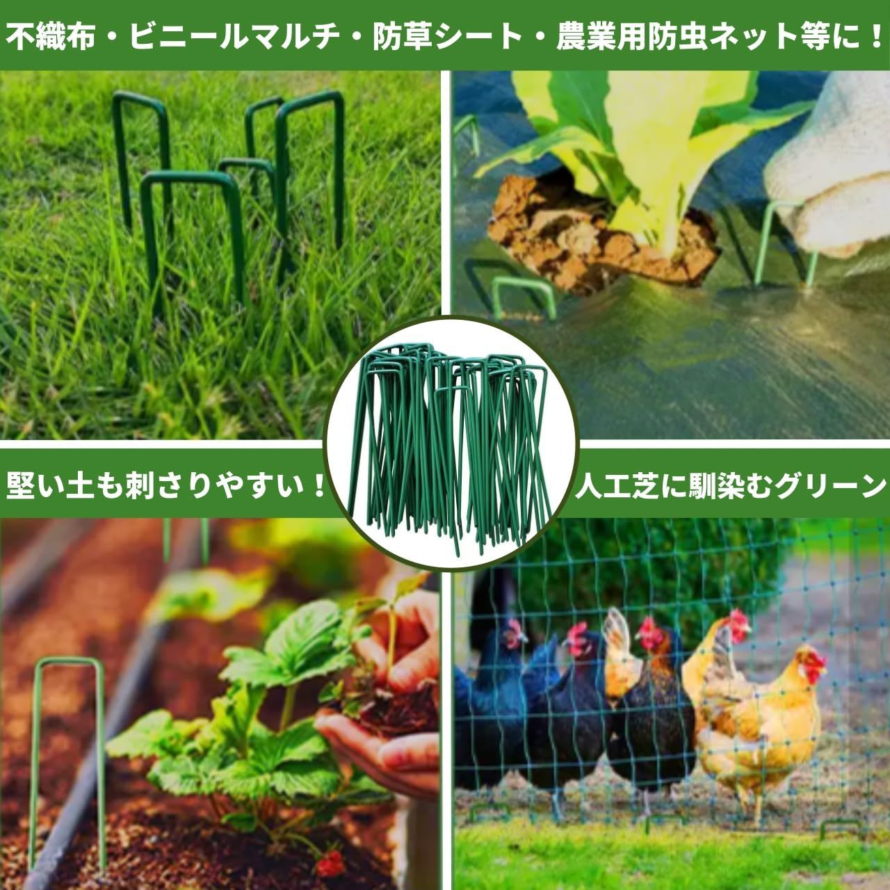 ?人工芝ピンで人工芝や防草シートで使えるuピンです。さまざまなシートやマットを地面に確実に設置・固定するために使用できます。