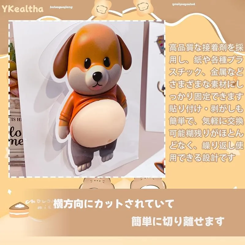 【商品説明】 ?? 商品の主な特徴まとめ(補足) ? 3D立体構造&ぷにぷく動作で治愈感たっぷり ? デブ犬デザインで見た目も可愛く、明るい雰囲気に ? スクイーズ機能で手軽にストレス解消 ? 強力粘着で多素材対応・糊残り少なく貼り替え自在 ? 手芸・クラフト・ギフト用途に最適な多シーン活用アイテム ?? おすすめ用途 スマホケース・背面のデコレーション 手帳・日記帳・ノートの装飾 カード作り・ギフトラッピング 机周りやパソコン周辺のちょっとした癒しアクセント 自分用ストレス解消グッズ / 贈り物