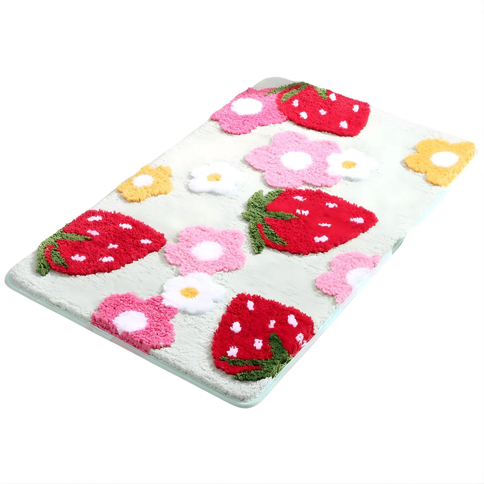 SESHIS 玄関マット いちご バスマット カーペット ラグ ラグマット グリーン 45×65cm [グリーン 45×65cm]