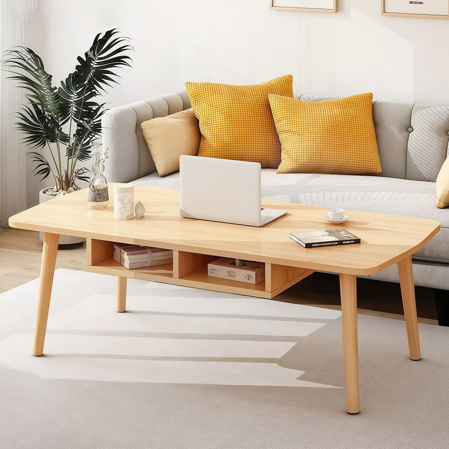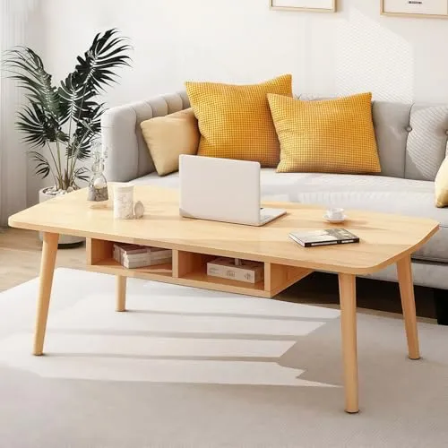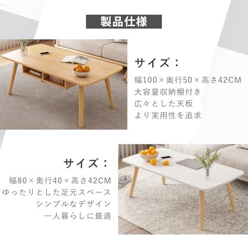 FRSTONE ローテーブル テーブル 一人暮らし 幅100cm 机 低い 収納付き 長方形 コーヒーテーブル デスク センターテーブル コンパクト 木製 シンプル 可愛い おしゃれ インテリア リビング 組立簡単 (収納付き 幅100cm, 【ナチュラル】/