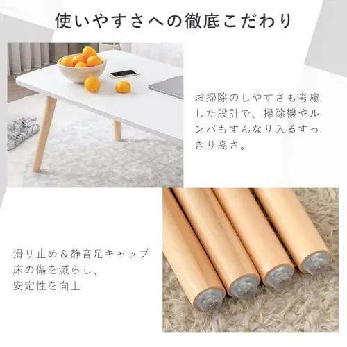 【多彩なシーンで活躍するマルチテーブル】リビングのメインテーブルとしてだけでなく、ソファ横のサイドテーブル、ベッドサイドのナイトスタンドとしても最適。その低さとちょうどいい高さで、座ったままの姿勢で読書やティータイム、リモートワークを快適にサポート。収納が限られる一人暮らしの住まいでも、すっききとまとまる実用的な一台です。