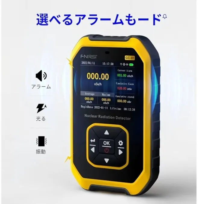 FNIRSI GC-01 放射線測定器 ガイガーカウンター 充電式 高精度 放射能測定器 水質検査 USB対応 ポータブル X線・β線・γ線測定 警報機能 核廃水危機対策 Type-C給電 TFT液晶ディスプレイ付き