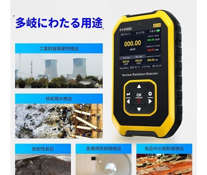 【幅広い用途】核放射線検出器は、個人の家や公共の場所、原子力発電所、加速器、鉄鋼産業、化学産業などの分野で個人の安全保護監視に広く使用されています。放射線は日常のあらゆる物体・物質からたえまなく放出されていますのて、住宅やアパート、オフィス、屋外に利用できます